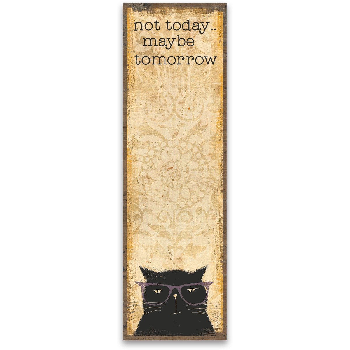 A list notepad displaying a rustic pet-themed design featuring a sassy cat with a sarcastic sentiment that reads "Not Today... Maybe Tomorrow." Our Not Today list pad includes 60 pages and a strong magnet to easily hang on magnetic surface for display. Proudly made in the USA. A fun pet-themed gift perfect for adding functional style to any space.