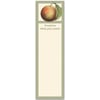 A list notepad from our Garden Collection displaying a vintage design of a peach and green gingham pattern around writing space with a fun garden-themed pun that reads "Practice What You Peach." Our Peach list pad includes 60 pages and a strong magnet to easily hang on magnetic surface for display. Proudly made in the USA. A fun garden-themed accessory perfect for adding functional style to any space.