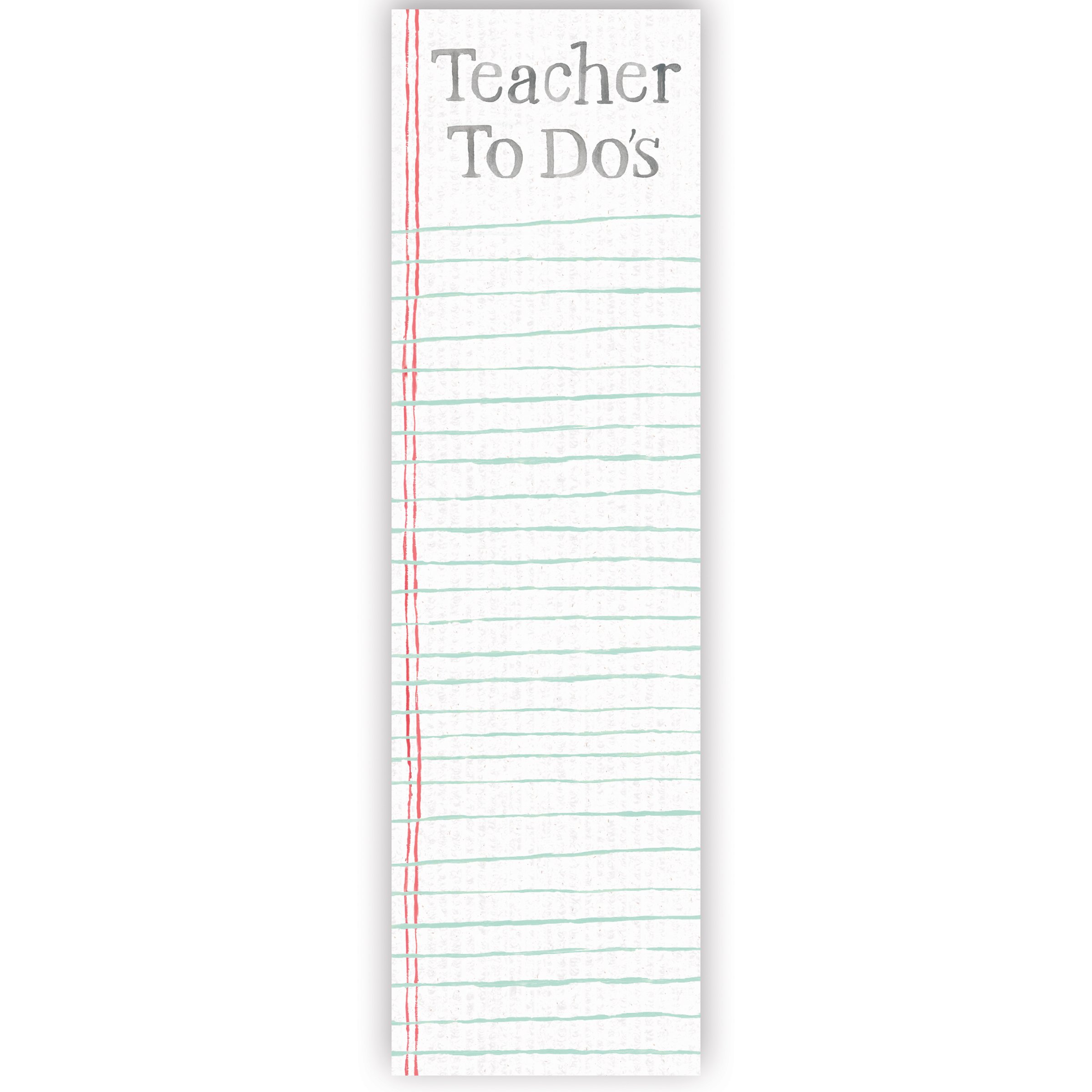 A list notepad from our Teacher Gift Collection displaying a hand painted lined paper design with a fun teacher inspired sentiment at the top that reads "Teach To Do's." Our Teacher To Do's list pad includes 60 pages and a strong magnet to easily hang on magnetic surface for display. Proudly made in the USA. A fun gift for teachers perfect for adding functional style to any classroom or desk.