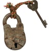 A decorative antique from our Primitive Collection displaying a lock and key design made from recycled antique items. Each antique lock and key features aged metal for a rustic style attached together with multicolor rope. This item is an authentic import from India making each piece unique with varying details like color, pattern, style, and size. Due to the method in which this item is made, we cannot guarantee similar details among multiple items. Our Lock & Key antique is designed to accent a display or easily hang on a wall. A rustic everyday home accent that can easily be added to any home or store display for a uniquely antique style. Displays well on its own but also coordinates with other items from our collection of decorative antiques.
