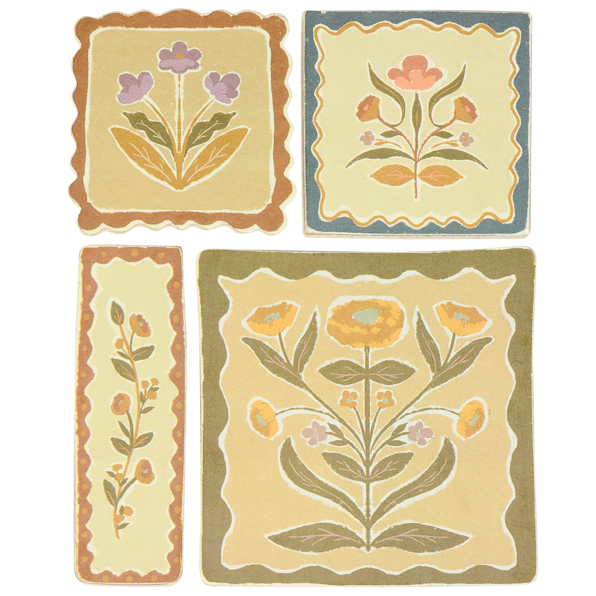 A set of 4 wooden magnets from our Fall & Harvest Collection featuring coordinating designs displaying folk art inspired fall florals replicated from original art hand painted in a unique watercolor style. Our Fall Folk Floral magnet set is placed on a tan metal card and packaged in a poly bag making it great for gifting with a hole in the card for easy store rack display. A set of folk art fall home accents perfect for adding personality to any space.