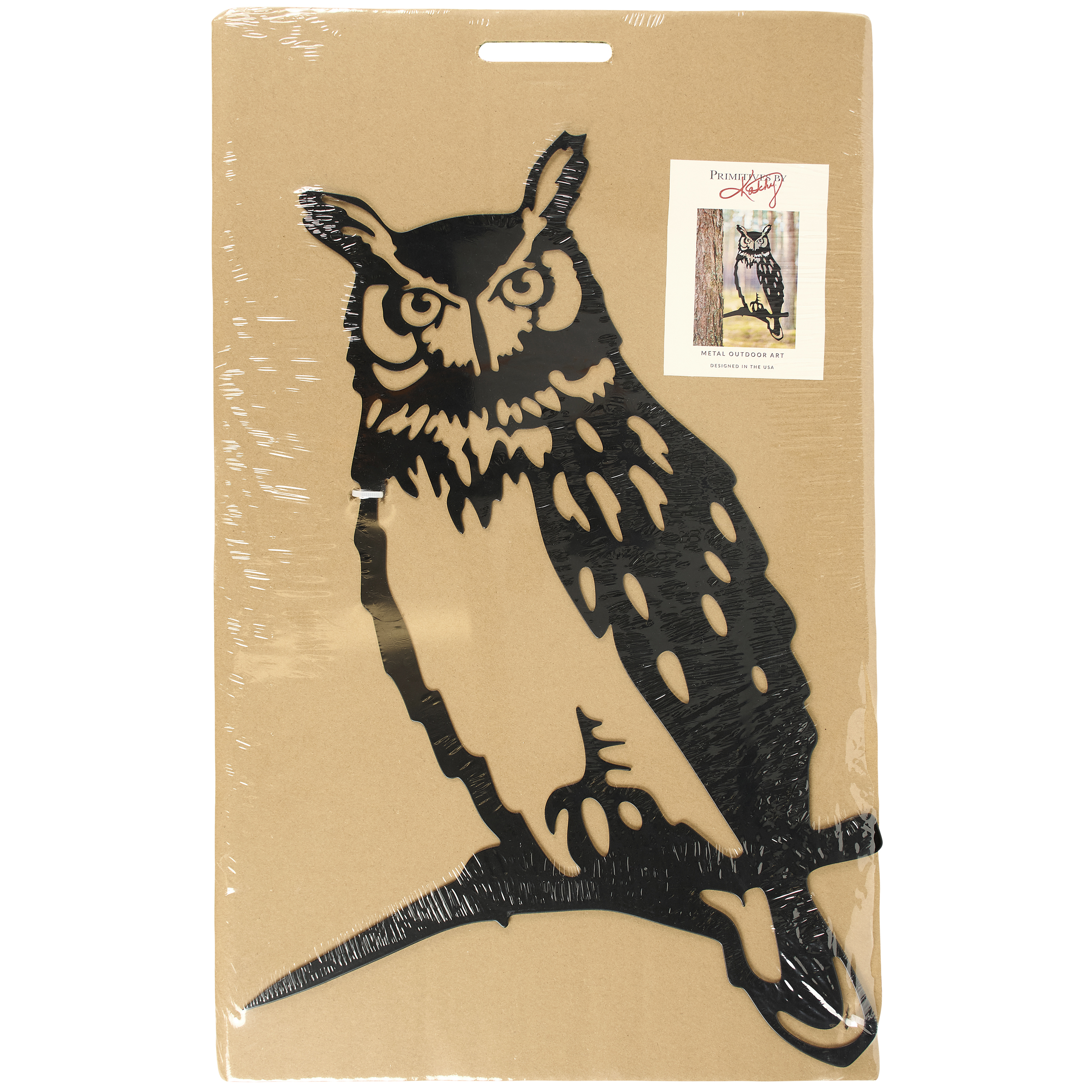 A durable metal décor piece from our Homestead Collection displaying a charming cutout design of an owl perched on a branch. Metal owl art is designed to be displayed outside using the spiked end to easily secure inside the hole of a post or a tree for a floating double-sided display. Our outdoor metal owl decor is a fun farm-themed home accent that easily adds personality to a barn or yard.