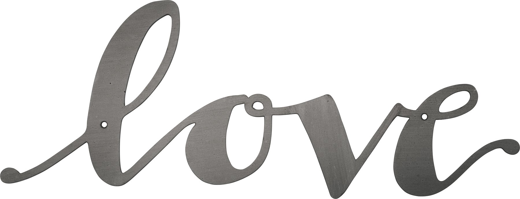 Brushed metal wall art lending precision cut "Love" hand lettered sentiment. When hung via the included nails & spacers and illuminated, a soft shadow will be projected behind metal word art, creating charming ambience. Makes for a great housewarming gift and adds unique texture to pair well with a variety of decor styles.