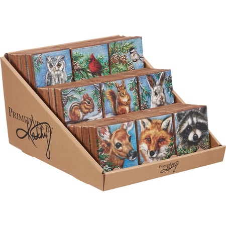 Save 20% today by purchasing this curated eye-catching display*. The Winter Woodland Mini Tier Bundle from our Christmas Collection features 9 different designs, plus a free tiered display for a total of 37 items. Bundle is designed to fill display and provide inventory for restocking. Bundle includes the following:
