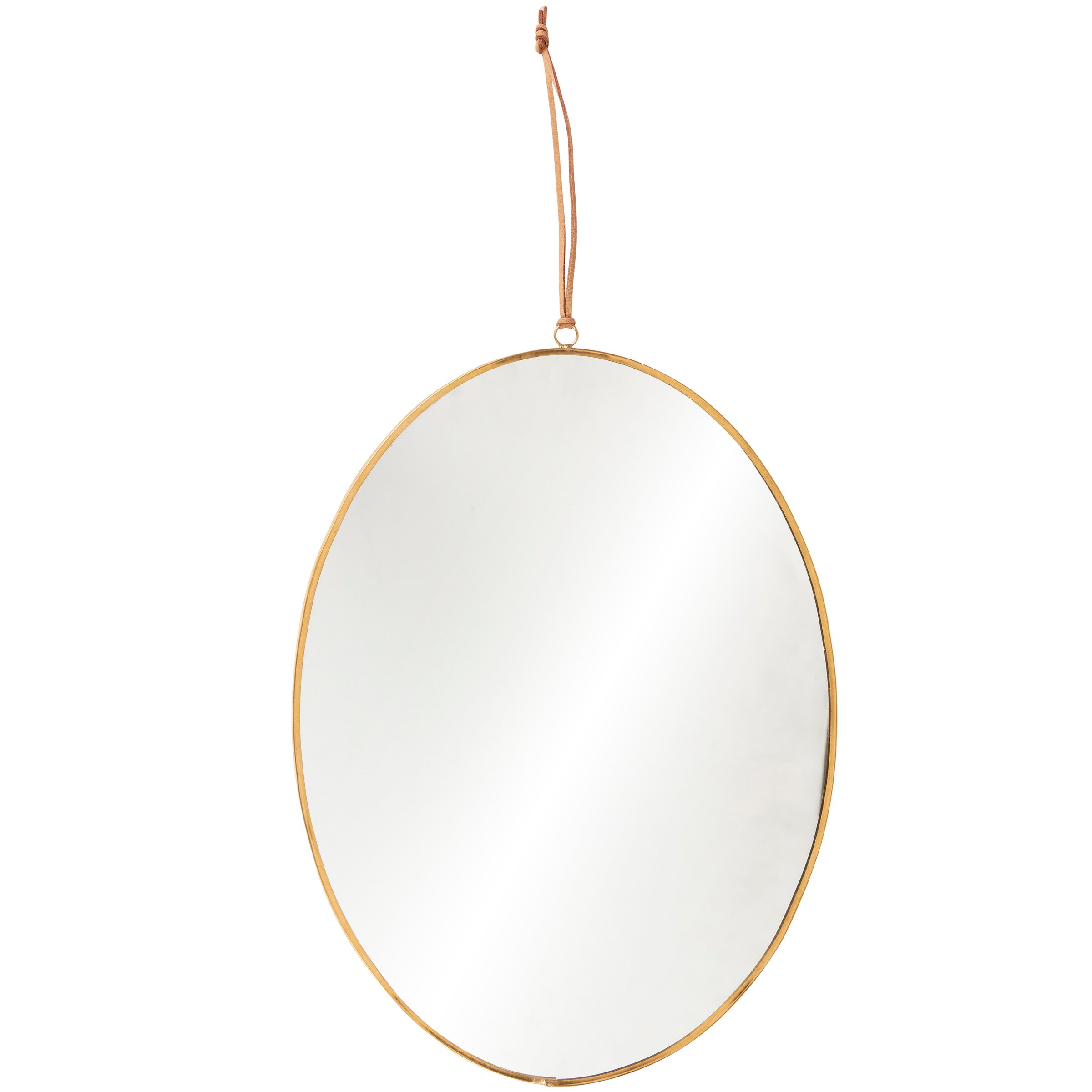 A decorative mirror from our Moody Collection displaying a simple oval design with an antique gold color trim. Our Oval mirror is easy to hang for display using the attached hanger at the top featuring a 5 inch drop. A vintage home accent perfect for everyday display.