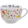 A stoneware 20 oz mug from our Inspiration & Blooms Collection displaying a full wrap-around design of vibrant hand illustrated florals. Mug also features an inside design with "A Cup Of Happy" sentiment along the rim and purple flower at the bottom. Our A Cup Of Happy mug is microwave, oven, dishwasher, and food safe. A lovely mug perfect for everyday drinkware.