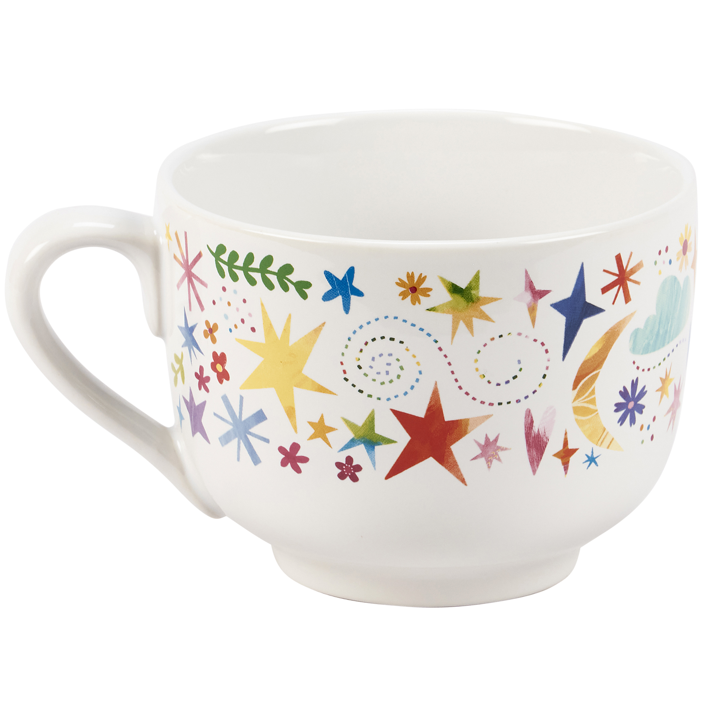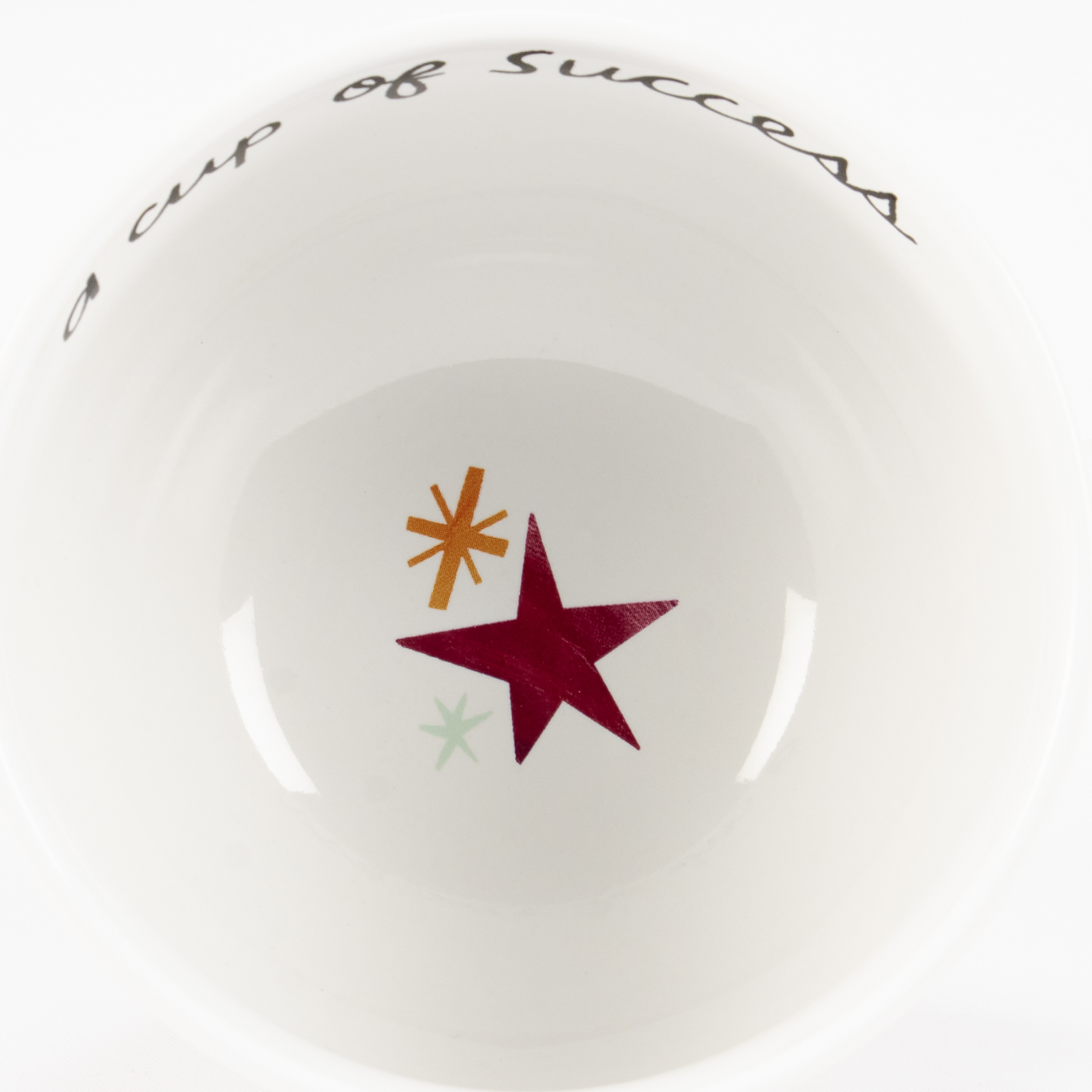 A stoneware 20 oz mug from our Inspiration & Blooms Collection displaying a full wrap-around design of vibrant hand illustrated florals, stars, and hearts. Mug also features an inside design with inspirational sentiment along the rim that reads "A Cup Of Success" and stars at the bottom. Our A Cup Of Success mug is microwave, oven, dishwasher, and food safe for easy use. An inspirational gift perfect for everyday drinkware.