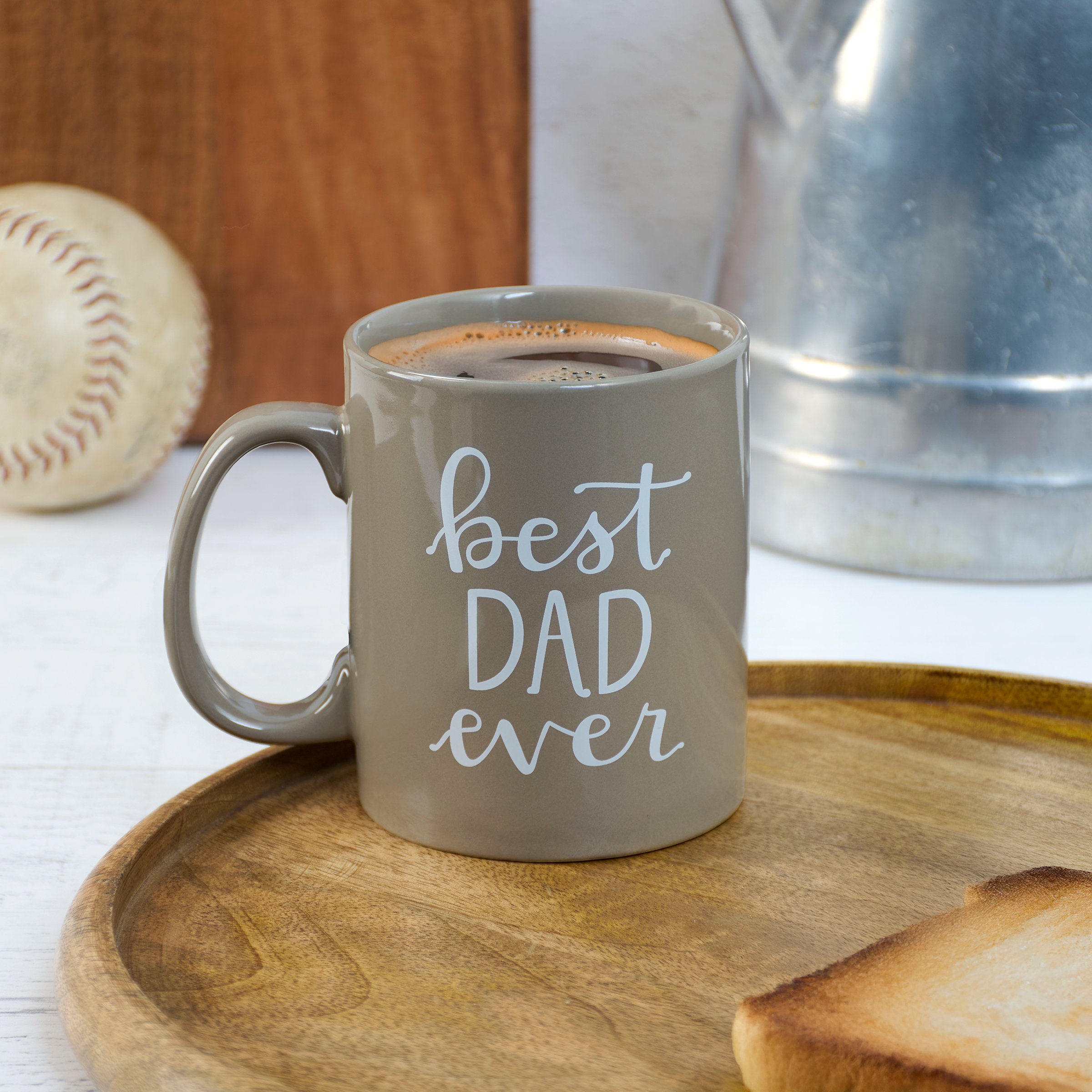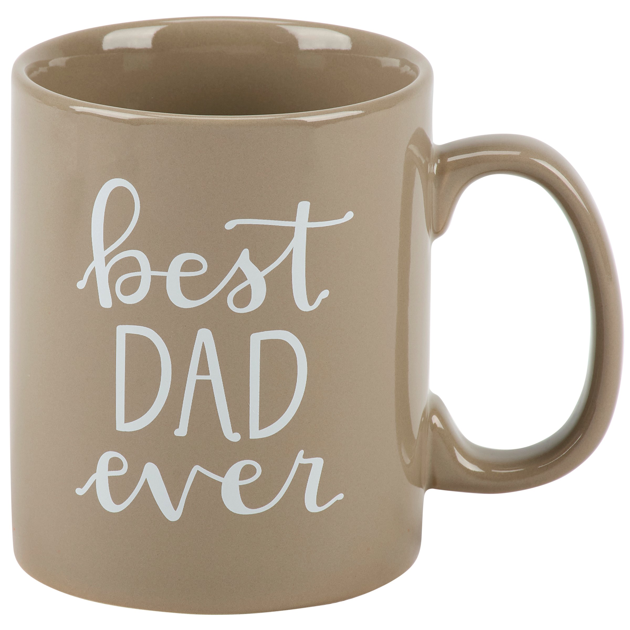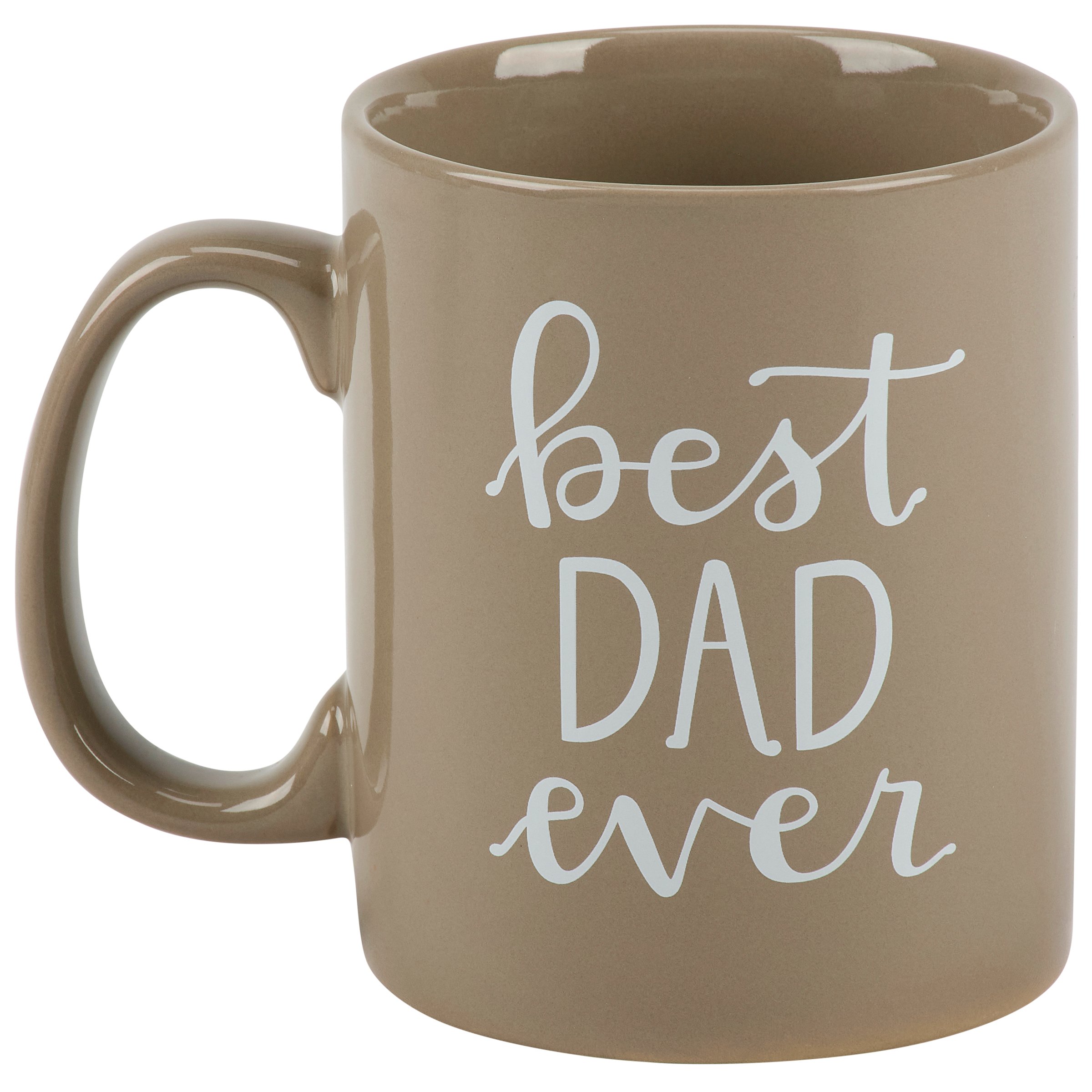 A stoneware 20 oz mug from our Father's Day Collection displaying a double-sided design of a fun dad inspired sentiment in a unique hand illustrated style that reads "Best Dad Ever." Our Best Dad Ever mug is conveniently microwave, oven, dishwasher, and food safe for easy use. A fun gift for Father's Day that can be used all year round as everyday drinkware.