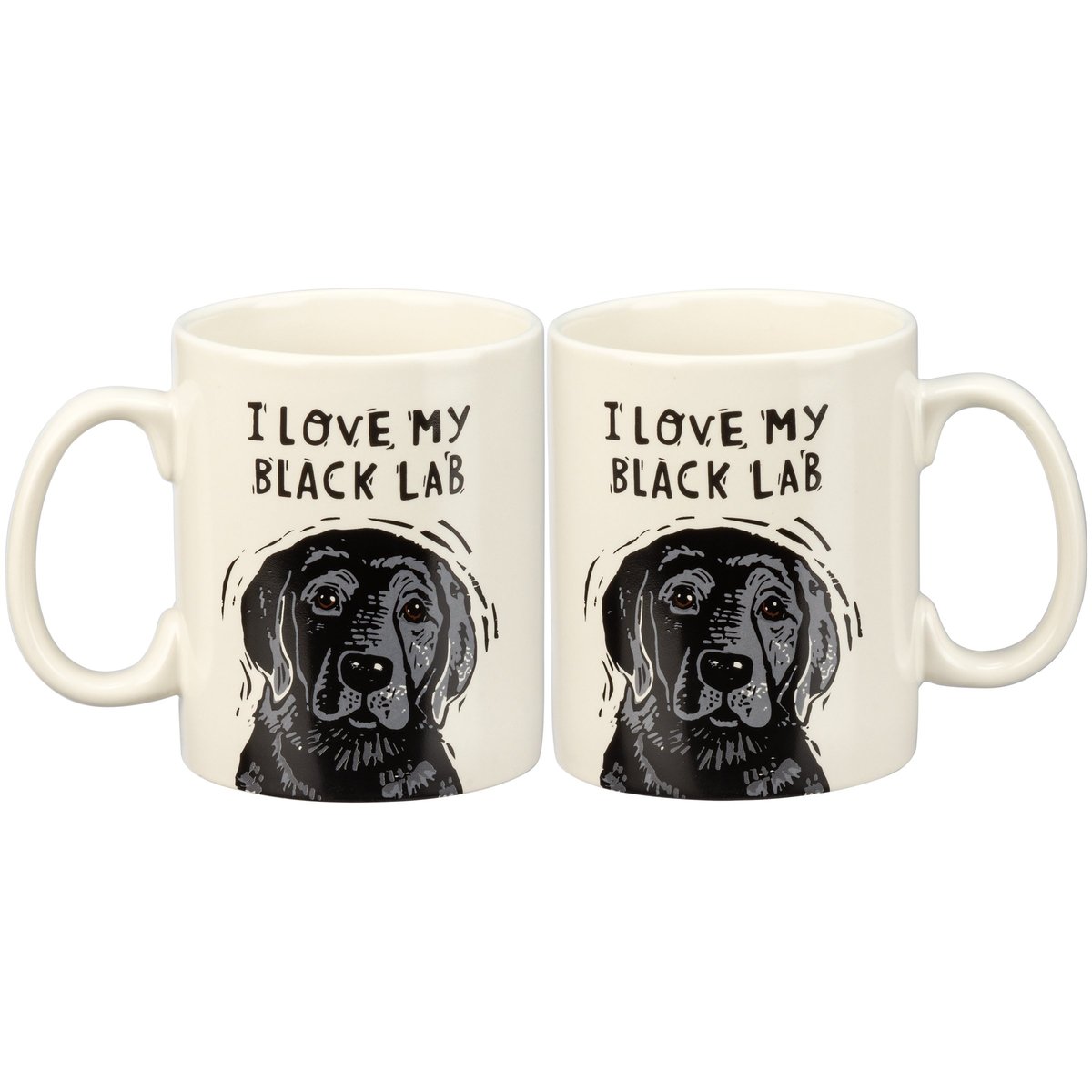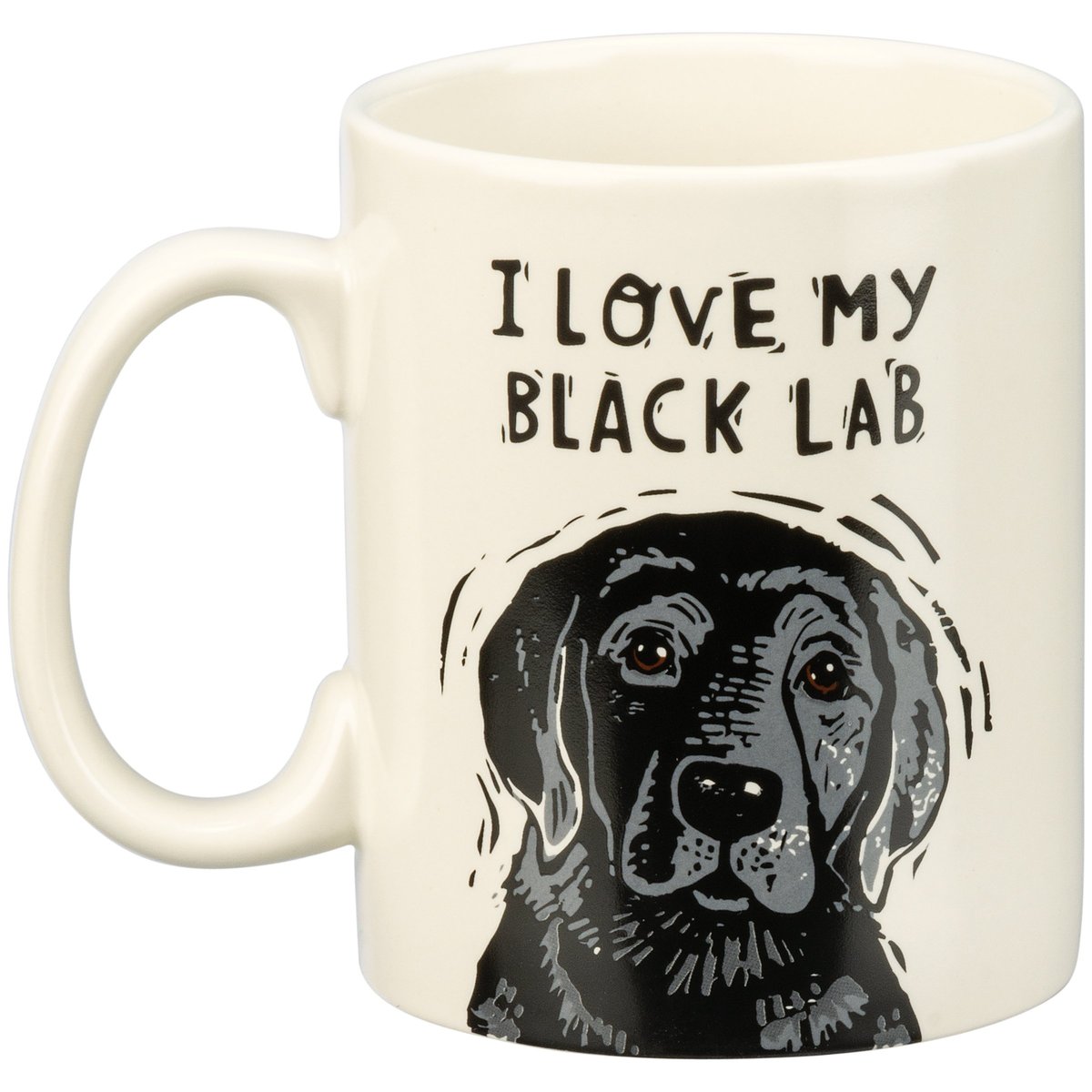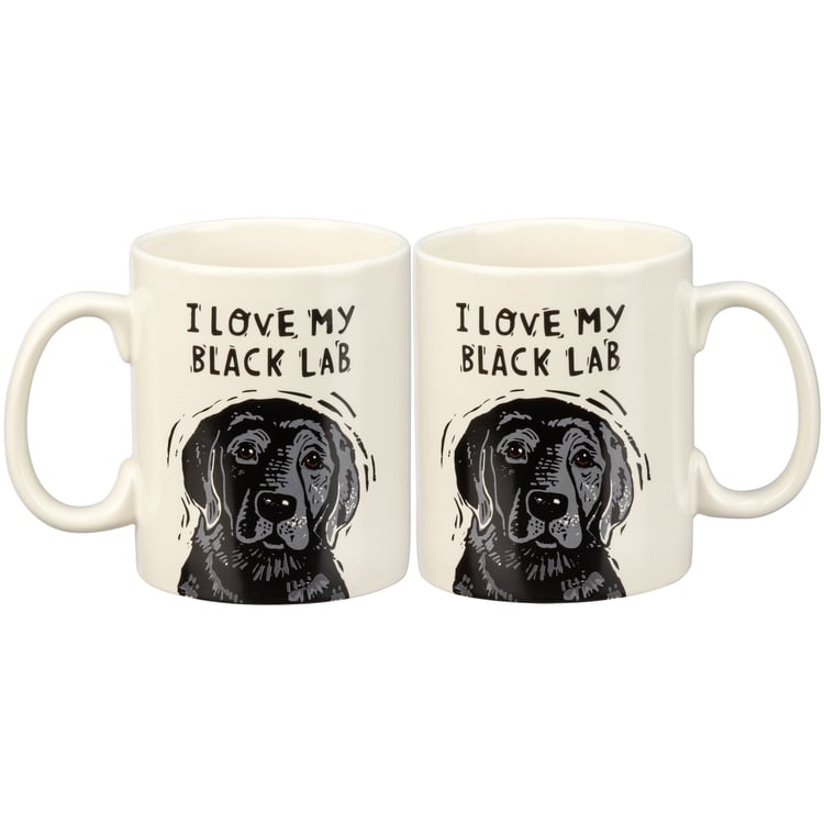 A double-sided stoneware mug from our Pet Collection features an "I Love My Black Lab" sentiment and block print black lab design. The I Love My Black Lab mug holds 20 oz. Microwave, oven, dishwasher and food safe.