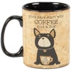 A stoneware 20 oz mug from our Pet Collection displaying a double-sided design of a dog sitting next to a coffee cup that says "I'm A Lotta Work" in a rustic style. Design also features a fun coffee and pet-themed sentiment that reads "Good Days Start With Coffee And A Dog." Our Coffee And A Dog mug is microwave, oven, dishwasher, and food safe for convenient use. A fun pet-themed gift perfect for everyday drinkware.