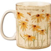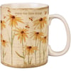 A large stoneware mug featuring rustic floral designs with an "Enjoy The Little Things" sentiment. Holds 20 ounces. Microwave, oven, dishwasher, and food safe.