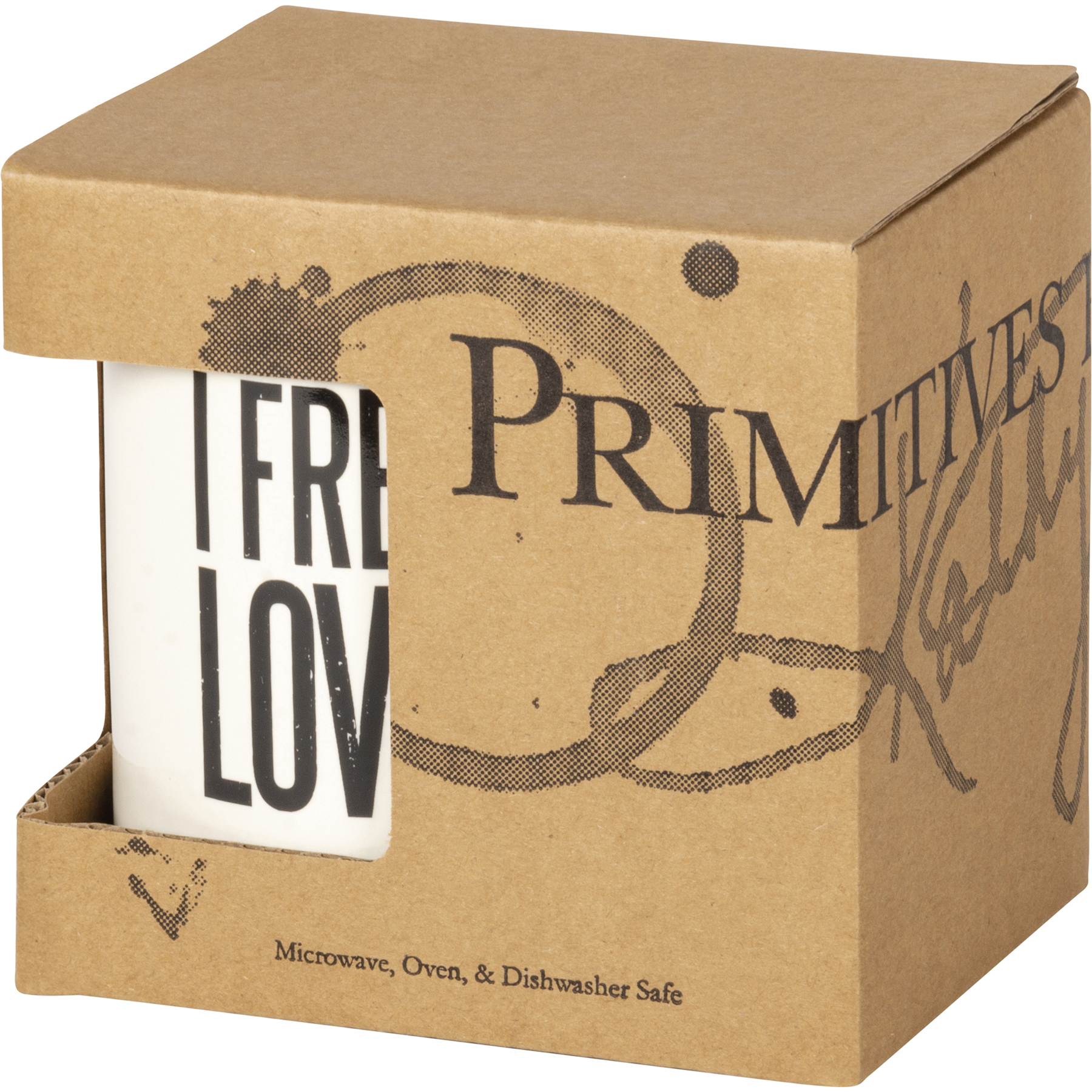 A black and white stoneware coffee mug from our Drinkware & Accessories lends a double-sided and distressed "I Freaking Love You" sentiment. Microwave, oven, dishwasher, and food safe. The I Freaking Love You mug holds 20 oz.