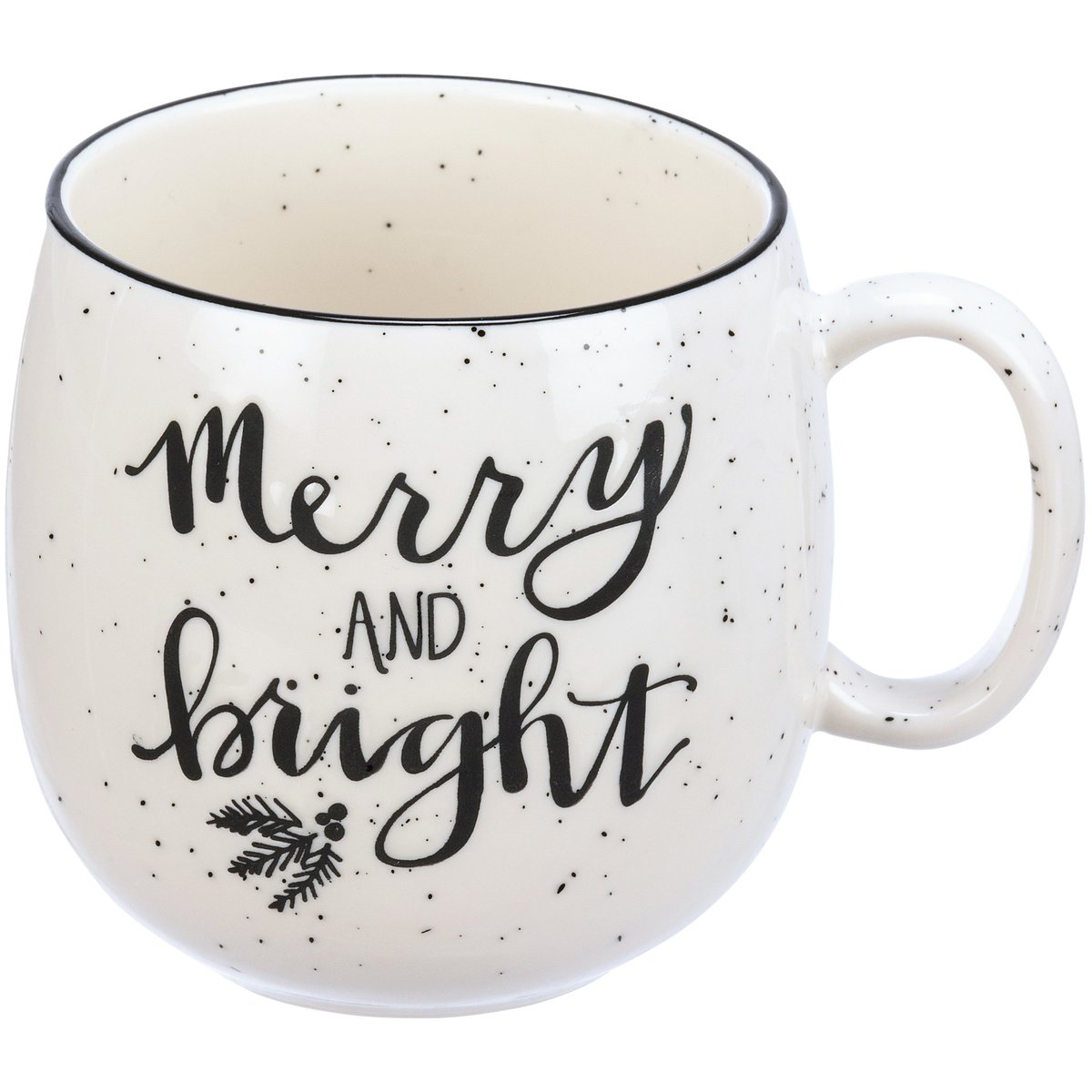 A stoneware mug from our Christmas Collection featuring an evergreen branch design with "Merry Christmas" sentiment. Our Merry and Bright mug is microwave, dishwasher, and food safe.