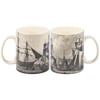 A stoneware 20 oz mug from our Beach Collection displaying a full wrap-around design of vintage art of schooners on the ocean. Our Schooners mug is conveniently microwave, oven, dishwasher, and food safe for easy use. A vintage beach-themed gift perfect for everyday drinkware.