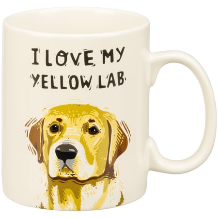 A double-sided stoneware mug from our Pet Collection features an "I Love My Yellow Lab" sentiment and block print yellow lab design. The I Love My Yellow Lab mug holds 20 oz. This yellow lab mug is microwave, oven, dishwasher and food safe.