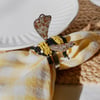 A decorative napkin ring from our Garden Collection featuring a craft style design of a bee made with colored beads. Our Bee napkin ring includes a metal ring to easily slip over rolled napkin and, when not in use, can be added to table setting as table décor. Napkin pictured not included. A charming tabletop accessory perfect for bee-themed tablescapes.