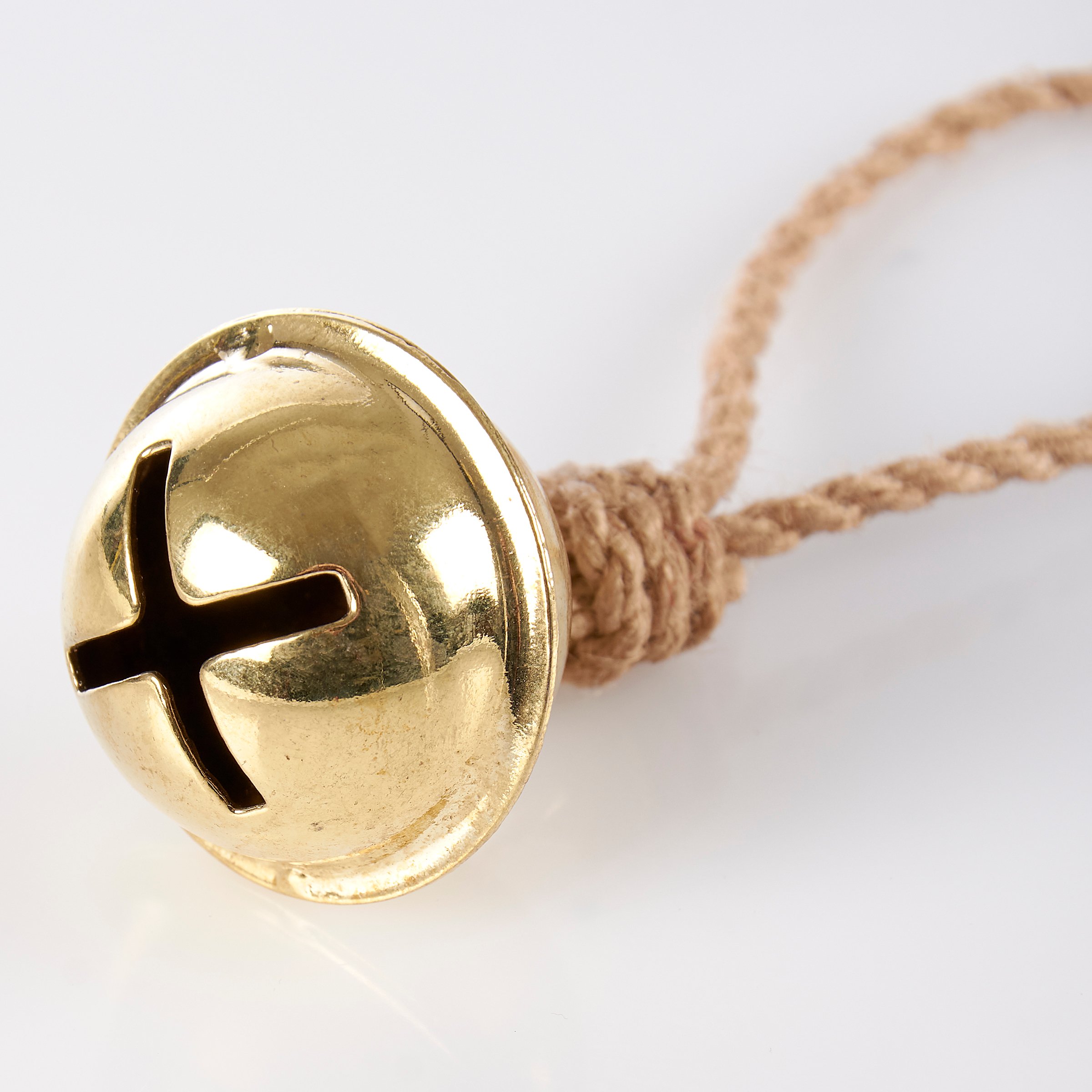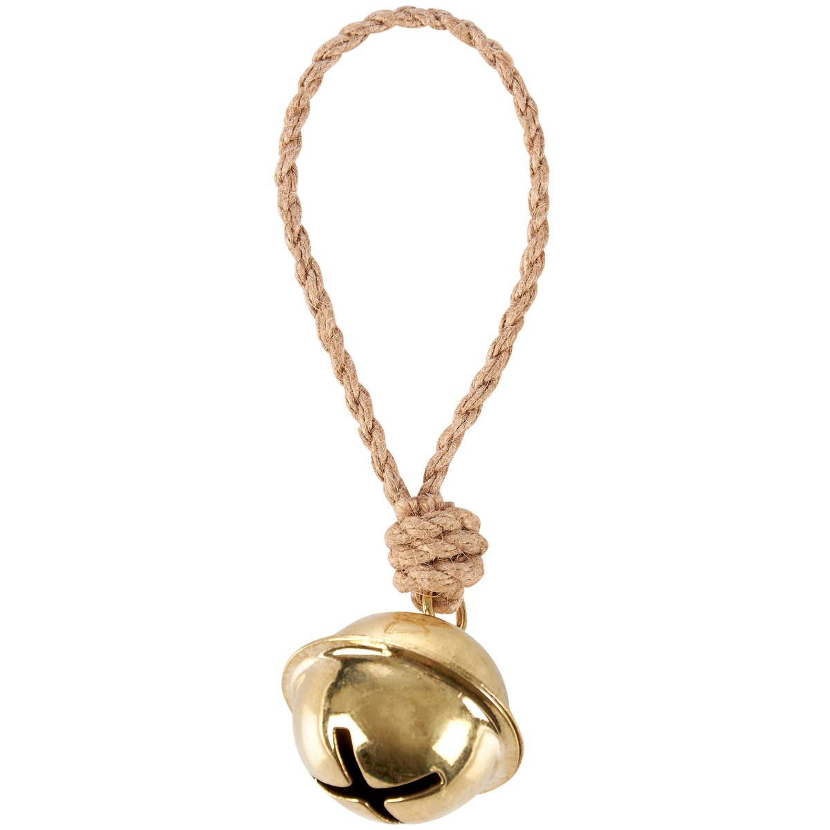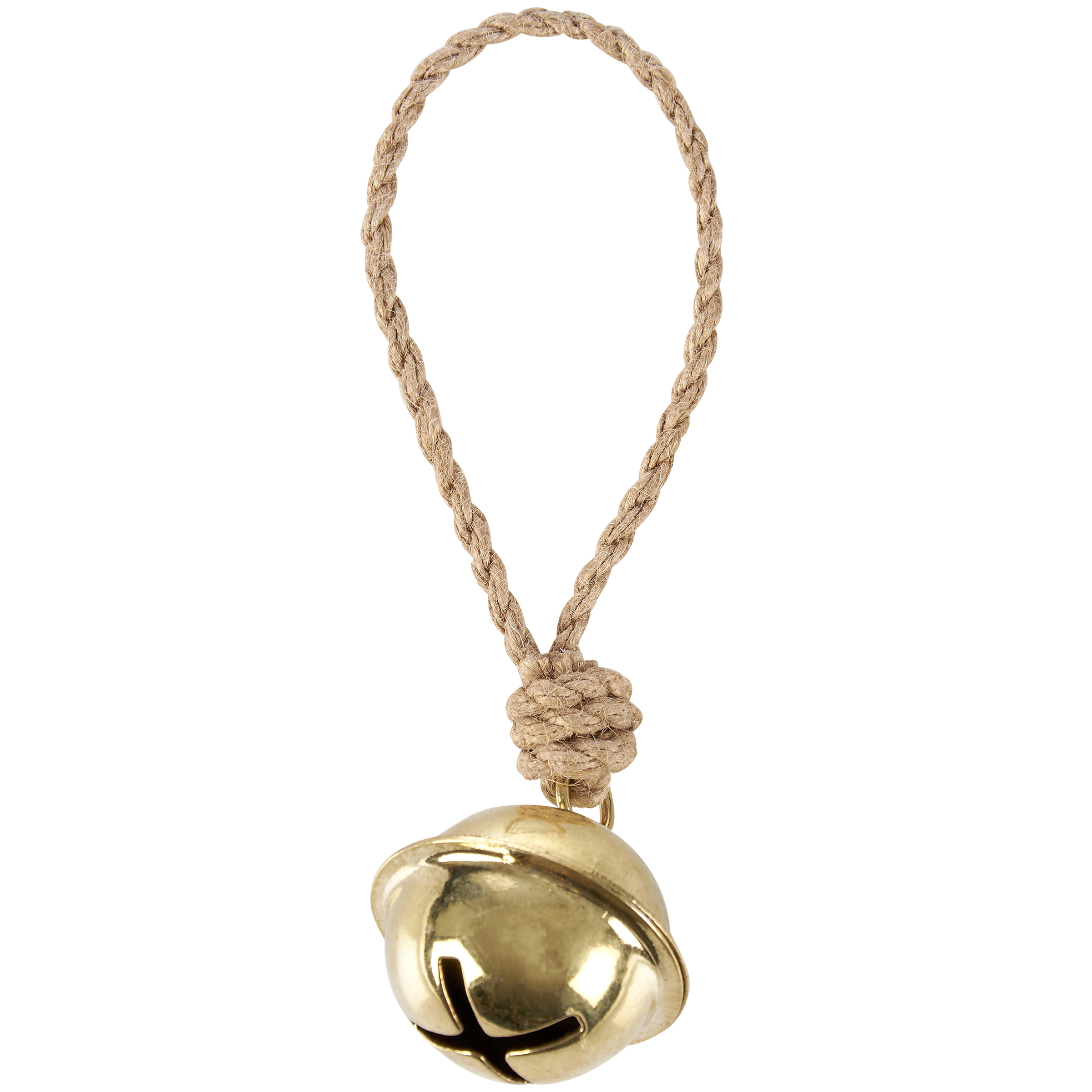 A napkin ring from our Christmas Collection featuring a gold bell design. Our Bell napkin ring includes attached jute loop to easily slip over rolled napkin and can be added to table setting when not in use as a seasonal accent. Napkin pictured not included. A rustic tabletop accessory perfect for seasonal gatherings.