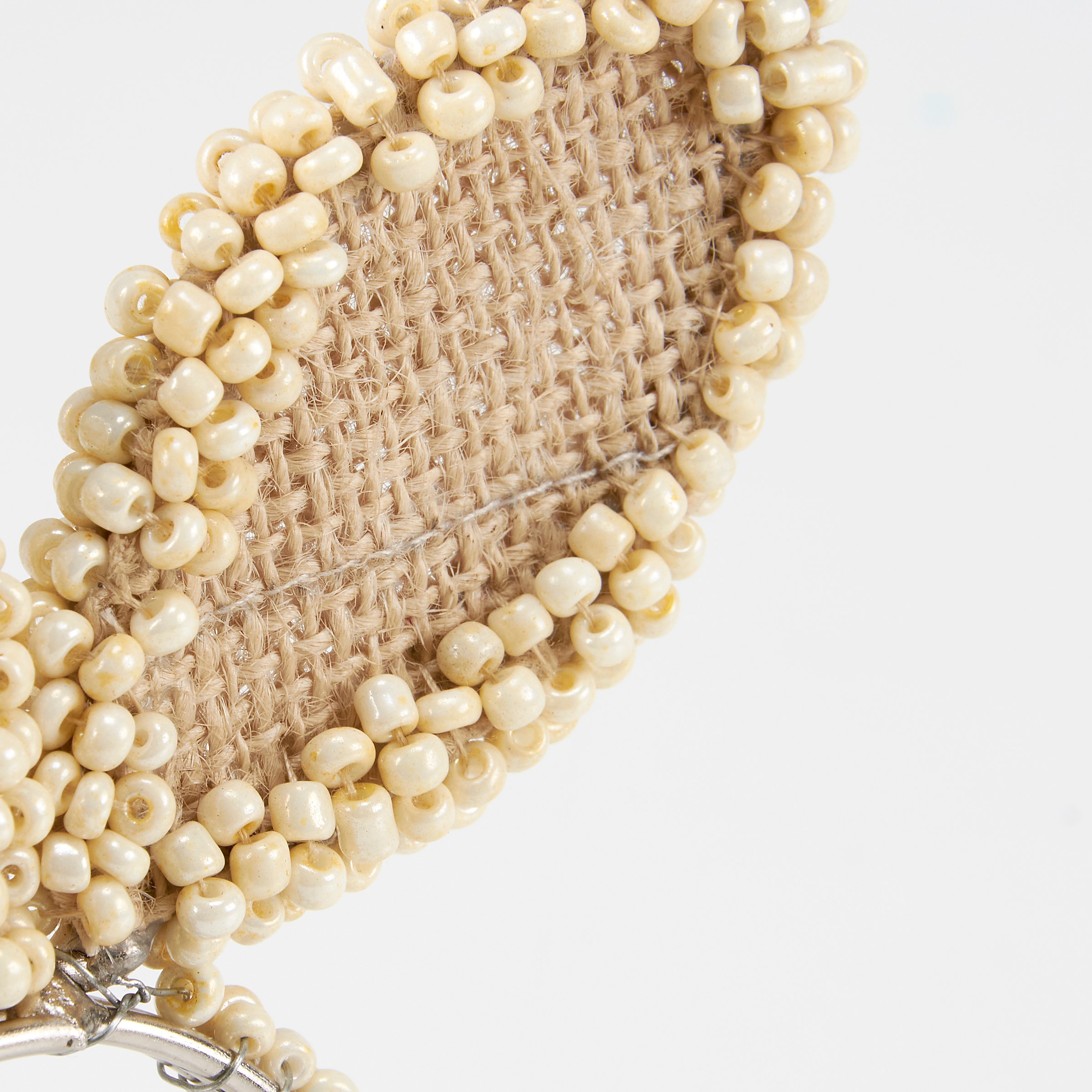 A decorative napkin ring from our Easter & Spring Collection featuring a craft style design of bunny ears made with colored beads. Our Bunny Ears napkin ring includes a metal ring to easily slip over rolled napkin and, when not in use, can be added to table setting as a seasonal accent. Napkin pictured not included. A charming tabletop accessory perfect for seasonal gatherings.