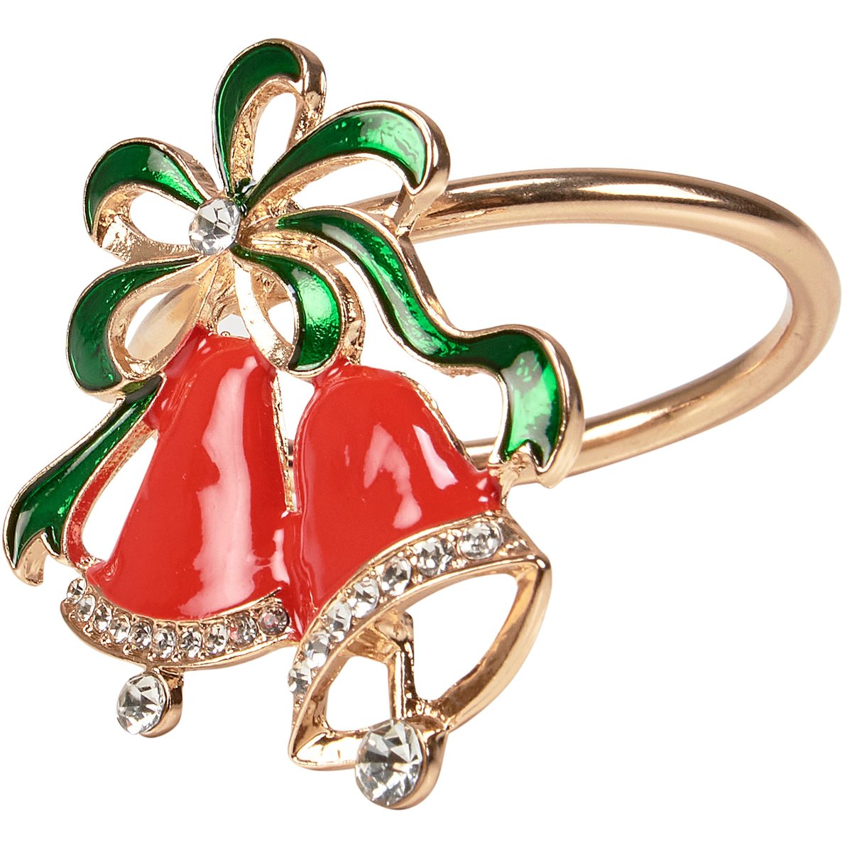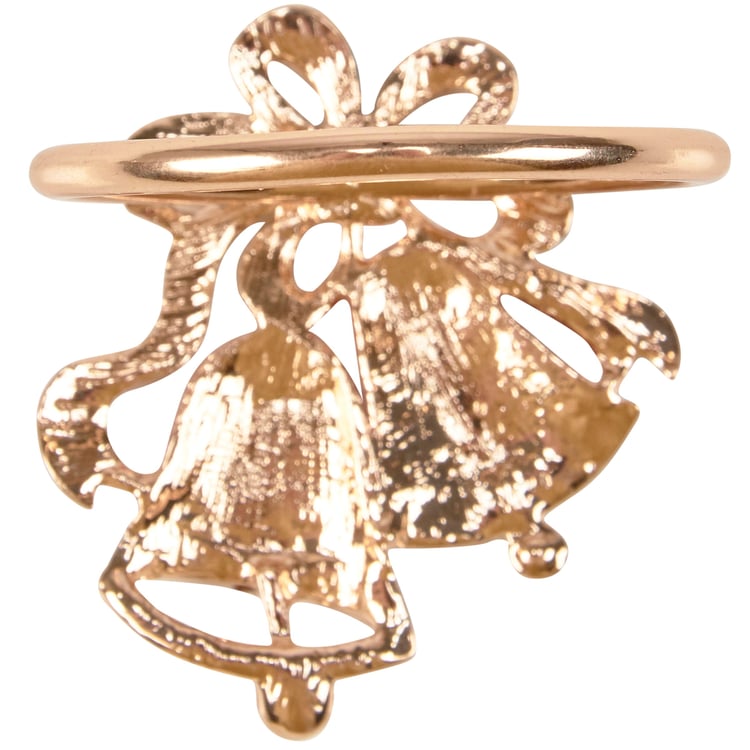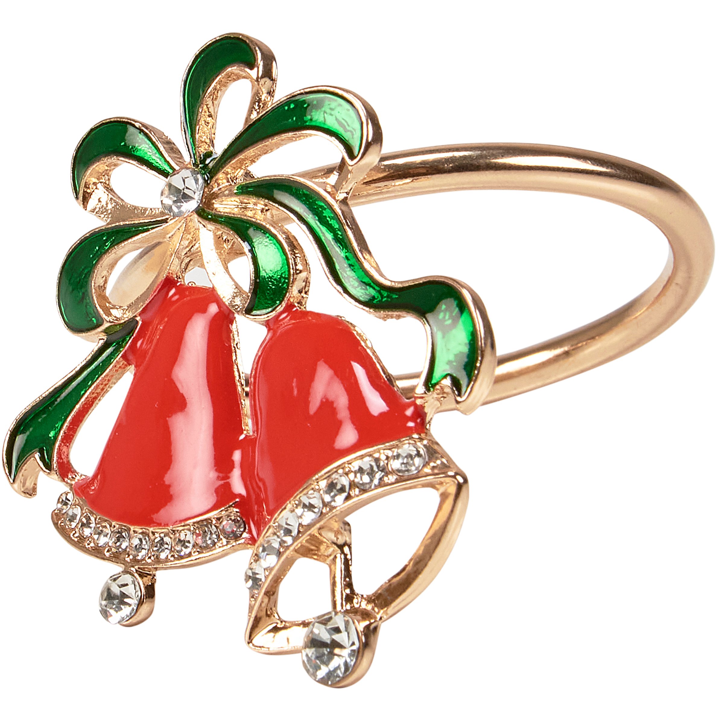 A metal napkin ring from our Christmas Collection featuring an elegant design of Christmas bells with diamond accents. Our Christmas Bells napkin ring includes attached metal ring that easily slips over rolled napkin, hen not in use, can be added to table setting as table décor. Napkin pictured not included. A vintage tabletop accessory perfect for seasonal gatherings.