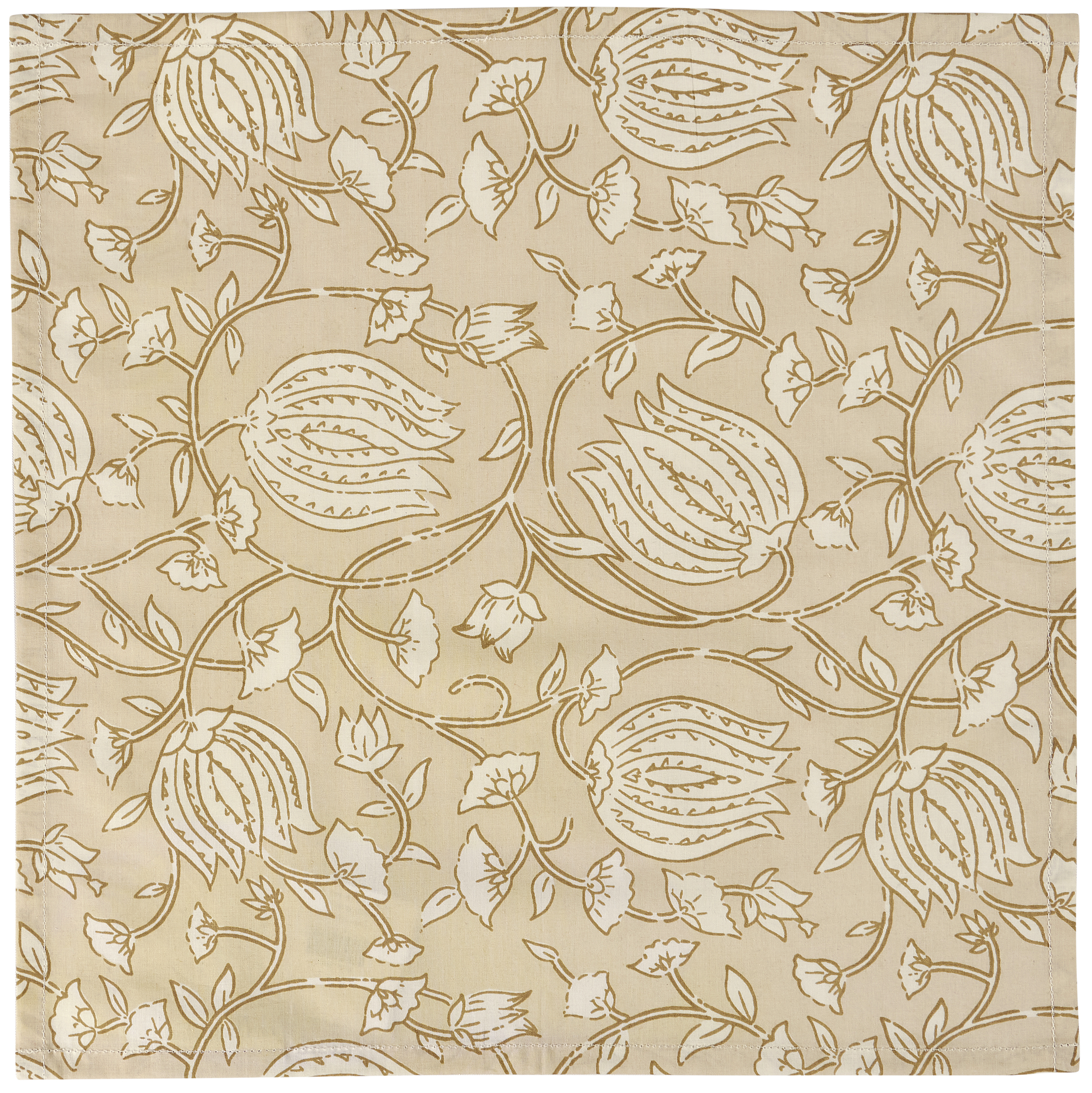 A reusable cotton napkin from our Botanical Collection displaying a floral inspired vintage pattern in a tan color palette. Our Tan Floral napkin is conveniently machine-washable for easy cleaning and reuse. A vintage tabletop accessory perfect for everyday gatherings.