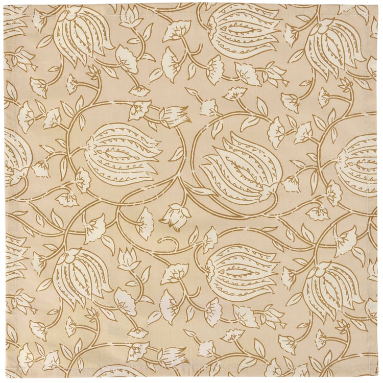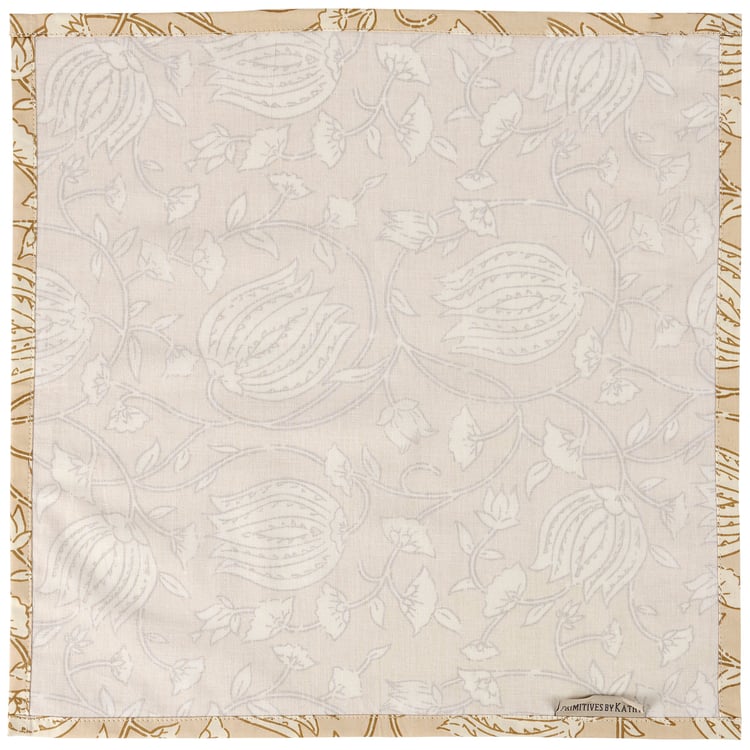 A reusable cotton napkin from our Botanical Collection displaying a floral inspired vintage pattern in a tan color palette. Our Tan Floral napkin is conveniently machine-washable for easy cleaning and reuse. A vintage tabletop accessory perfect for everyday gatherings.