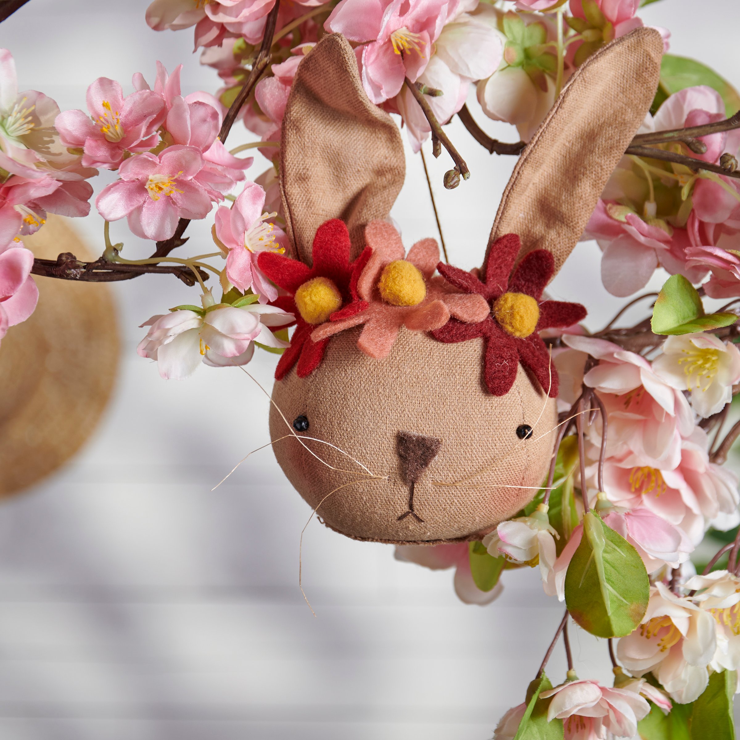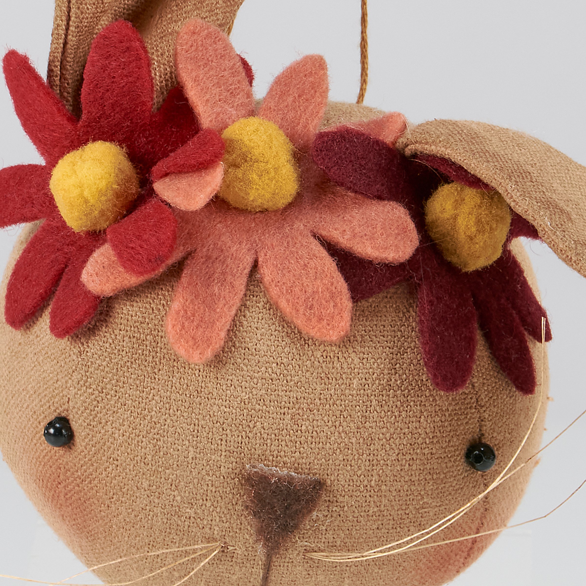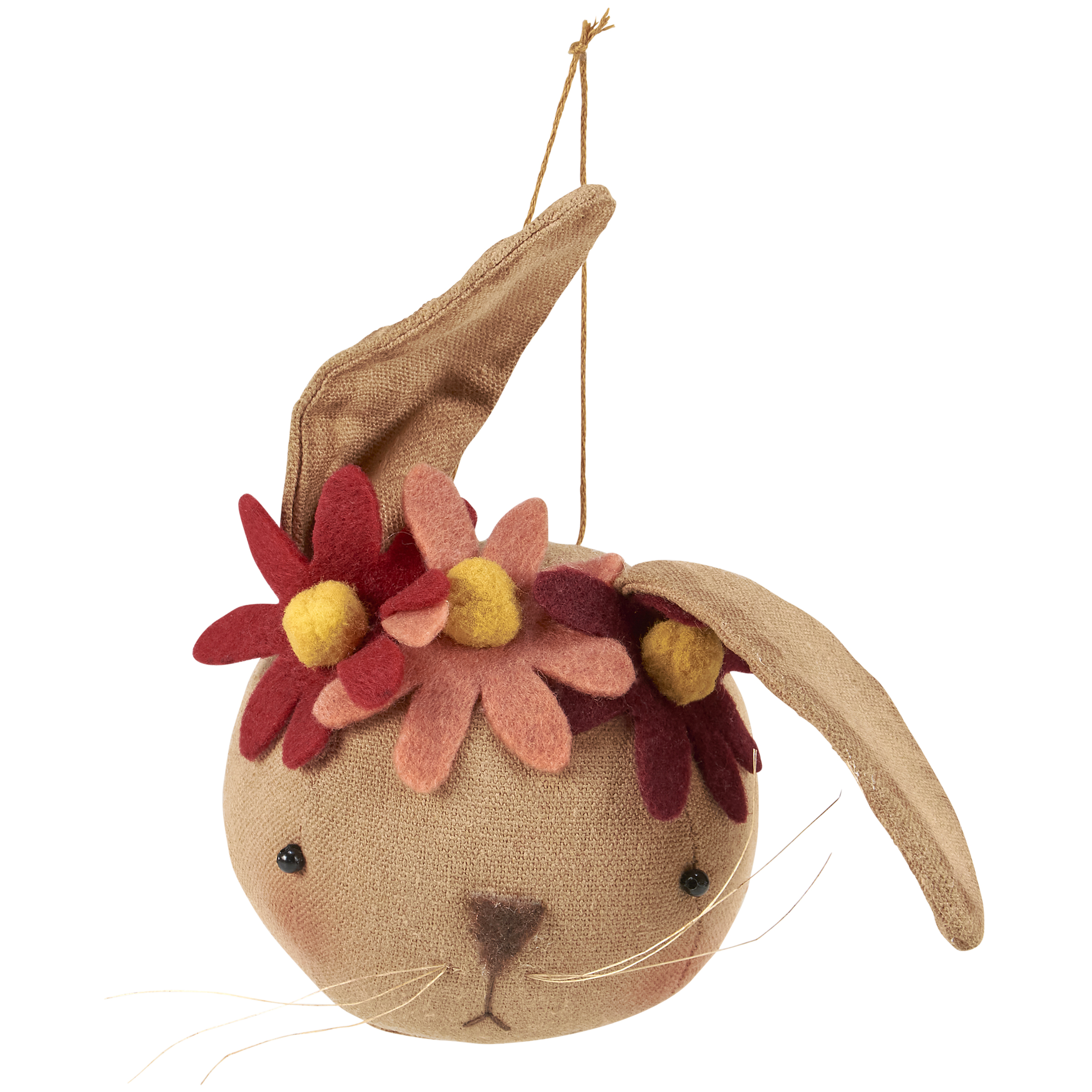 A decorative ornament from our Easter & Spring Collection featuring a primitive inspired bunny doll head with flower crown. Our Flower Bunny ornament is easy to hang via attached string hanger. A primitive seasonal home accent with a variety of display options.