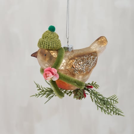 Glass Beanie Robin Ornament