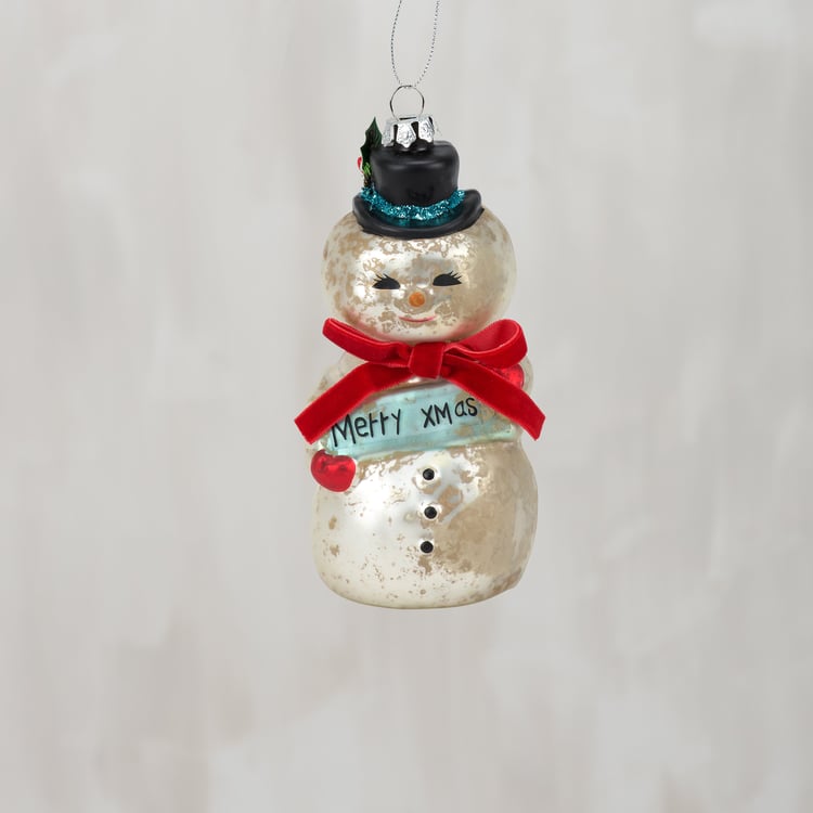 Glass Merry Christmas Snowman Ornament