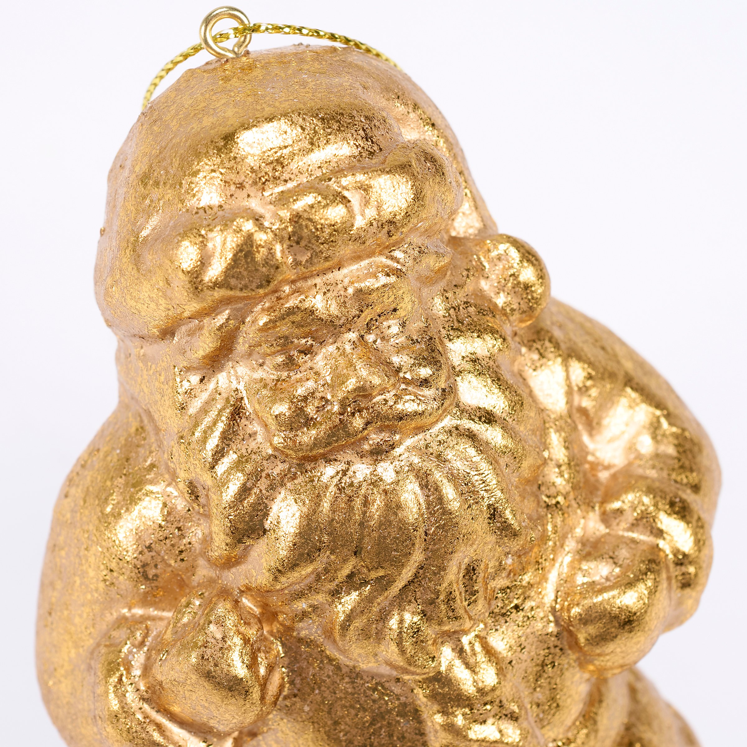A decorative ornament from our Christmas Collection displaying a sculpted vintage Santa design with metallic gold finish for added interest. Our Gold Santa ornament is easy to hang for display via attached string hanger. A vintage Christmas home accent perfect for a Christmas tree or for seasonal decorating.