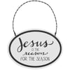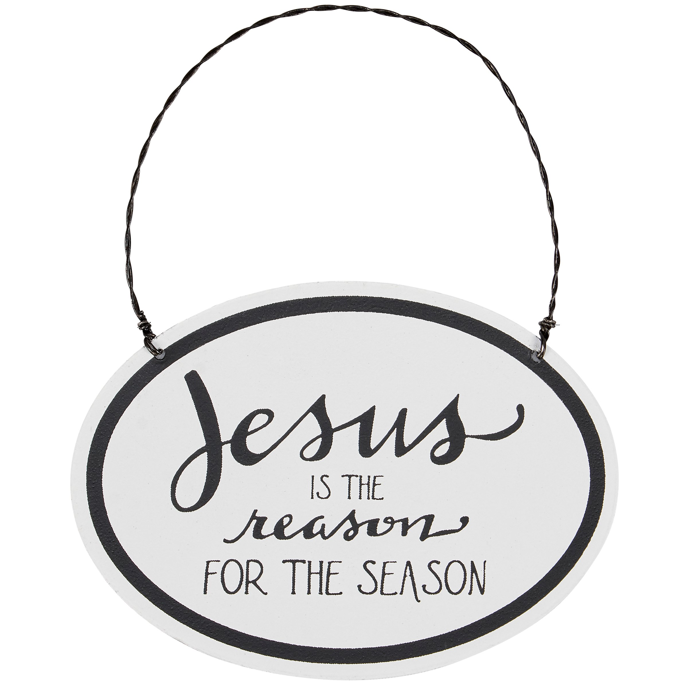 A galvanized metal ornament from our Christmas Collection displaying a faith inspired seasonal sentiment in a hand illustrated style that reads "Jesus Is The Reason For The Season." Our Jesus Is The Reason ornament is ready to hang via attached twisted wire hanger. A rustic Christmas home accent perfect for a Christmas tree or for seasonal decorating.
