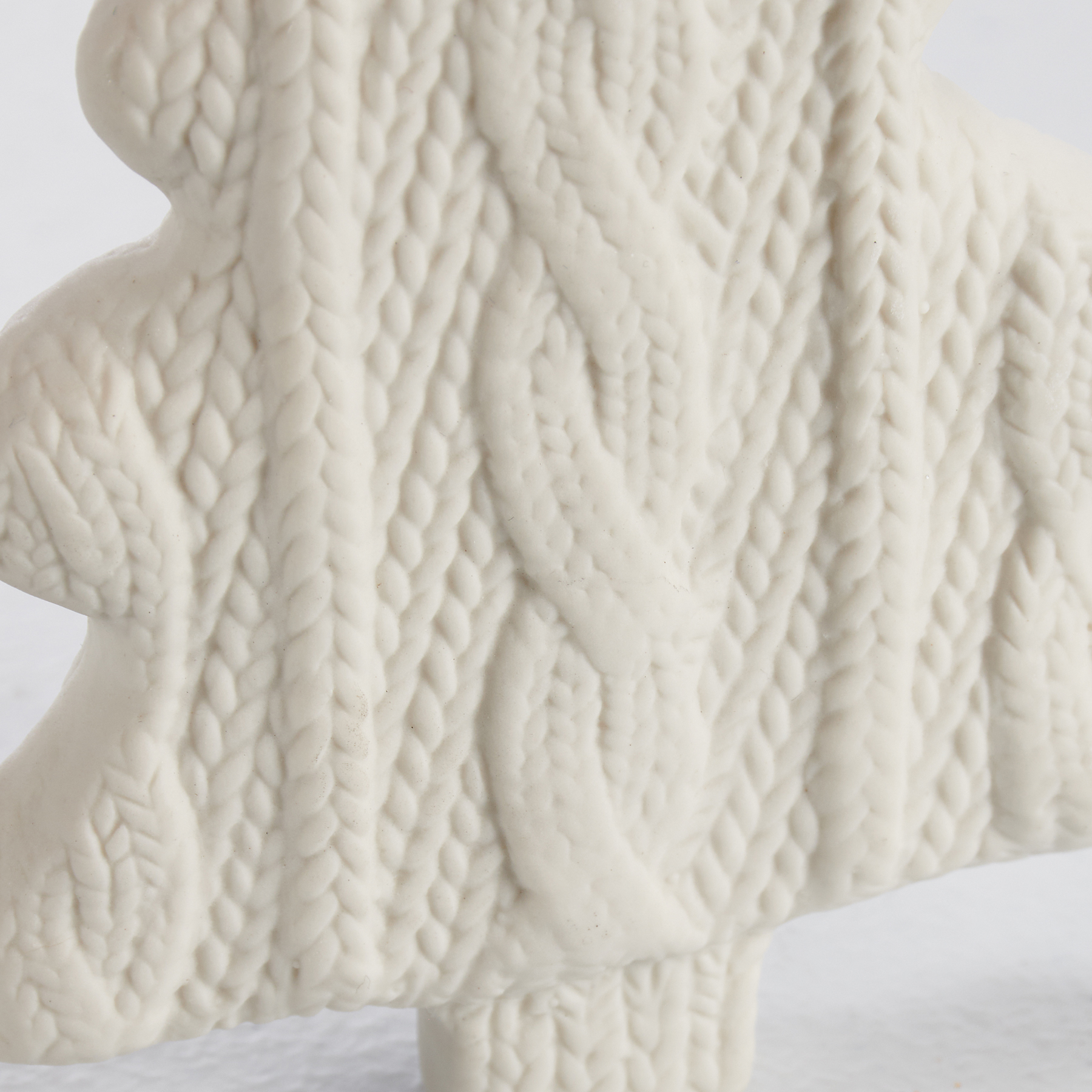 A decorative stoneware ornament from our Christmas Collection featuring a knitted mitten Christmas tree shape in a neutral color palette. Our Knitted Tree ornament is easy to hang via attached jute hanger. A neutral seasonal home accent.