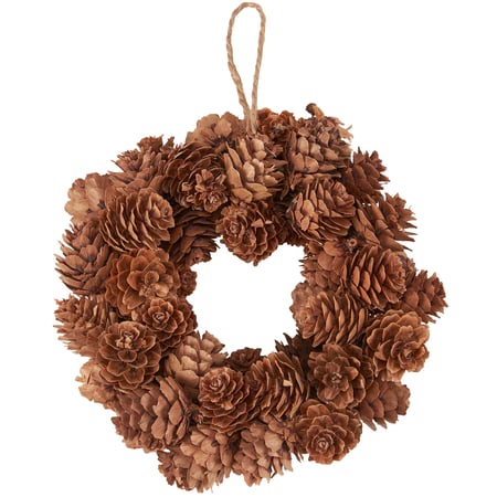A decorative ornament from our Christmas Collection displaying pinecone wreath design. Our Pinecone Wreath ornament is easy to hang for display via attached jute hanger. A nature inspired ornament perfect for seasonal decorating.