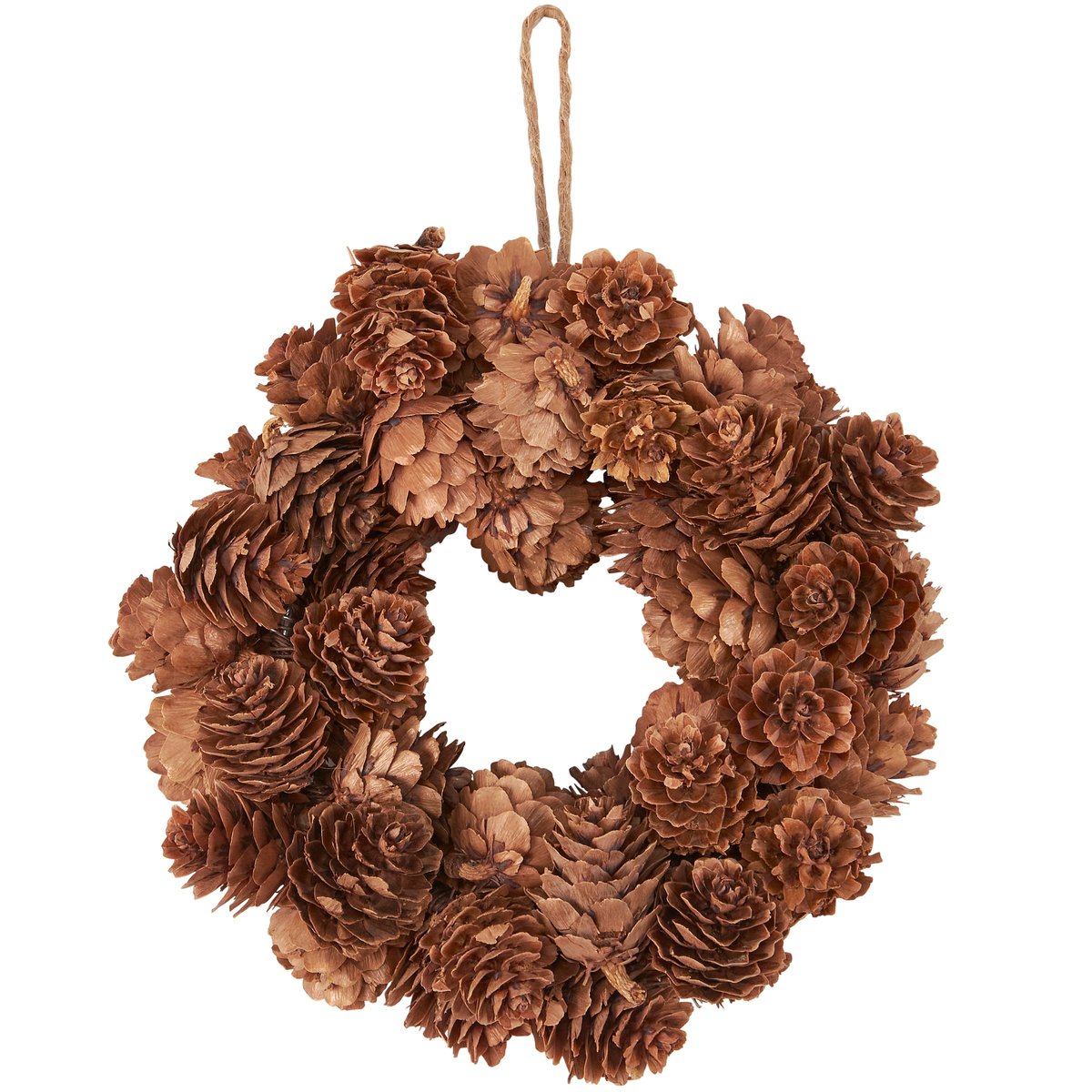 A decorative ornament from our Christmas Collection displaying pinecone wreath design. Our Pinecone Wreath ornament is easy to hang for display via attached jute hanger. A nature inspired ornament perfect for seasonal decorating.