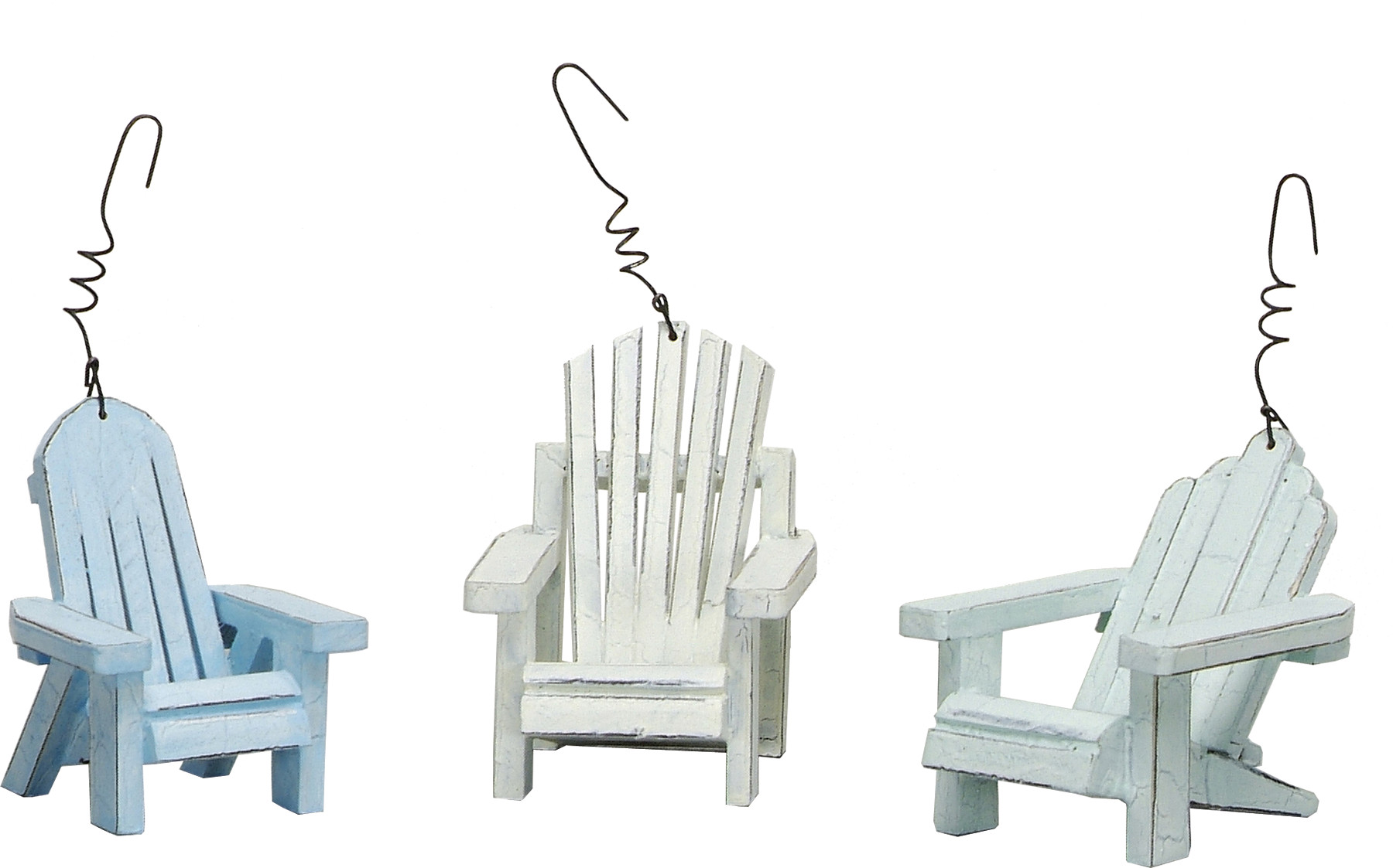 A set of three pastel beach chair ornaments of varying sizes and colors to make for a relaxing display. Our Beach Chair Ornament Set from our Beach Collectionfeatures top wire hooks for easy hanging.