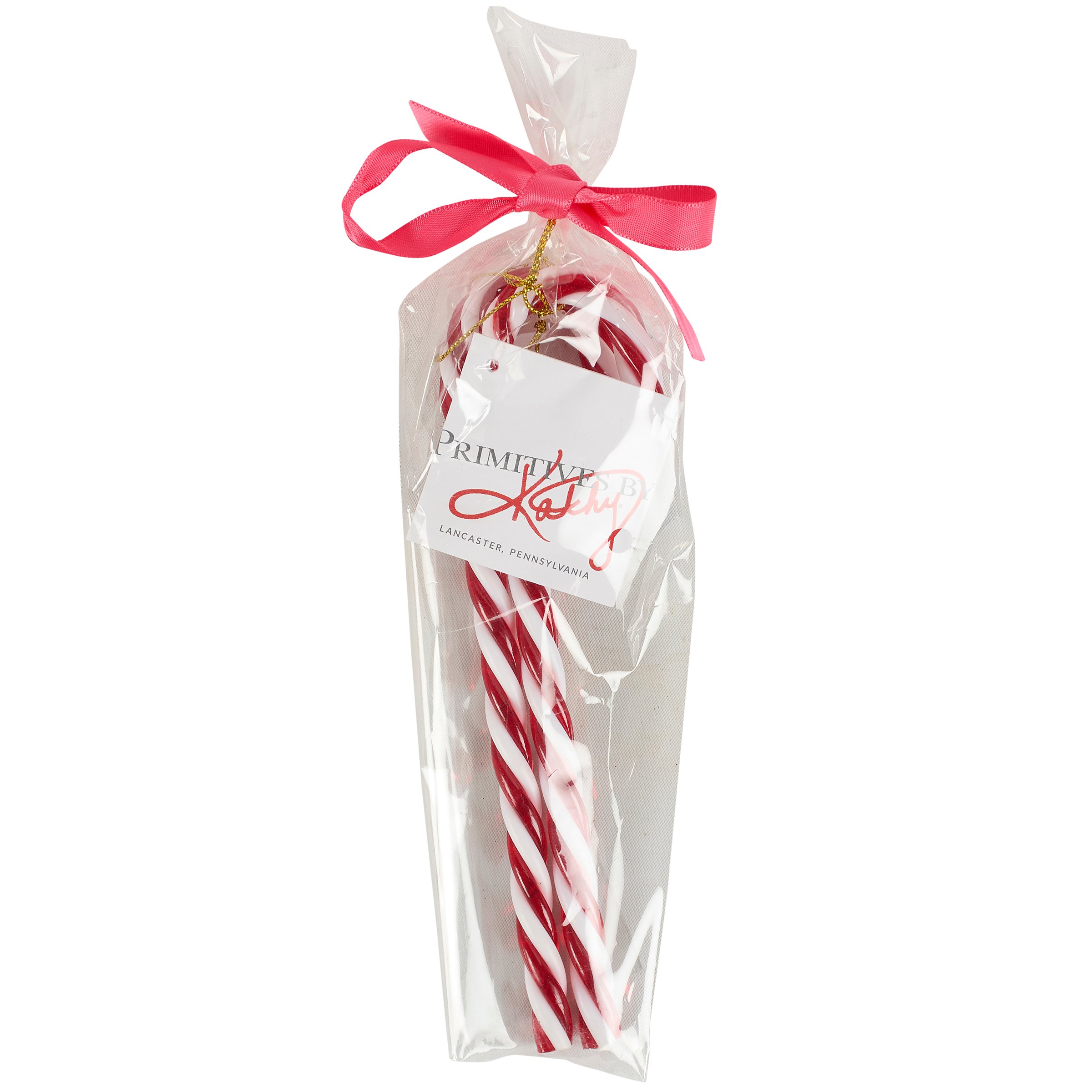 A set of decorative ornaments from our Christmas Collection including 2 retro candy canes made with twisted red and white plastic for a textured design. Our Candy Canes ornament set is easy to hang for display via attached gold string hangers. Retro ornament set comes packaged together in a polybag and tied with red ribbon and hangtag. A set of retro Christmas home accents perfect for a Christmas tree or for seasonal decorating.
