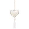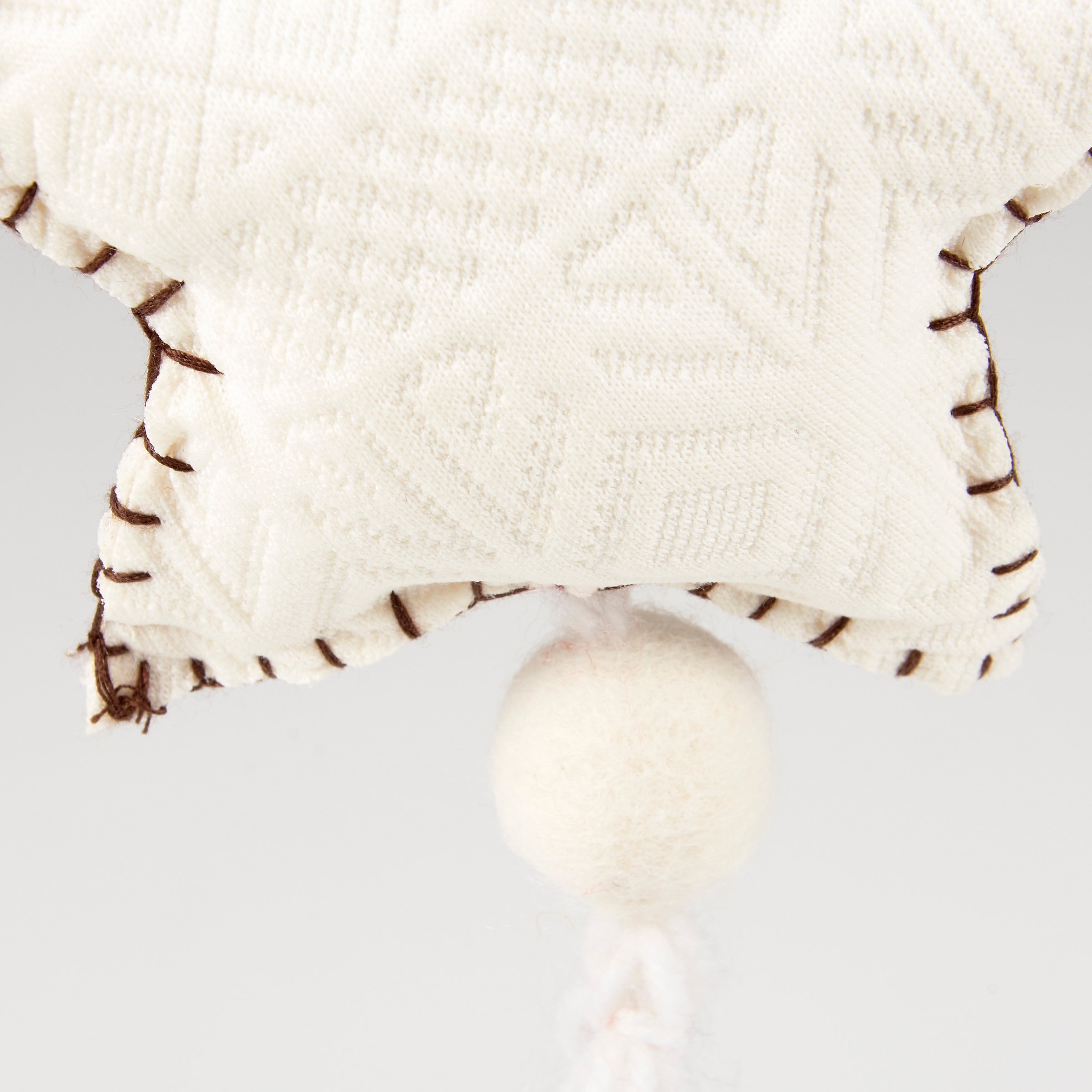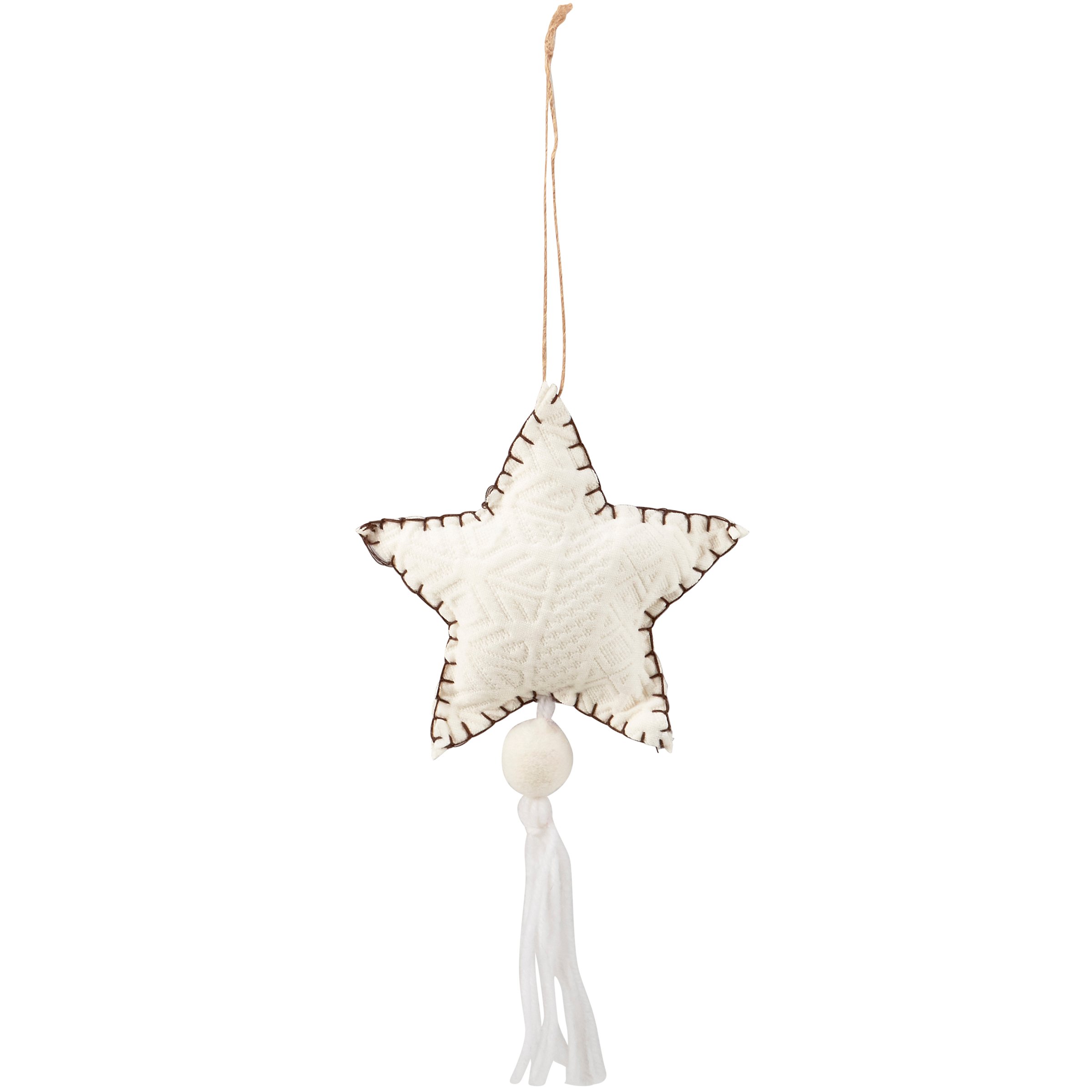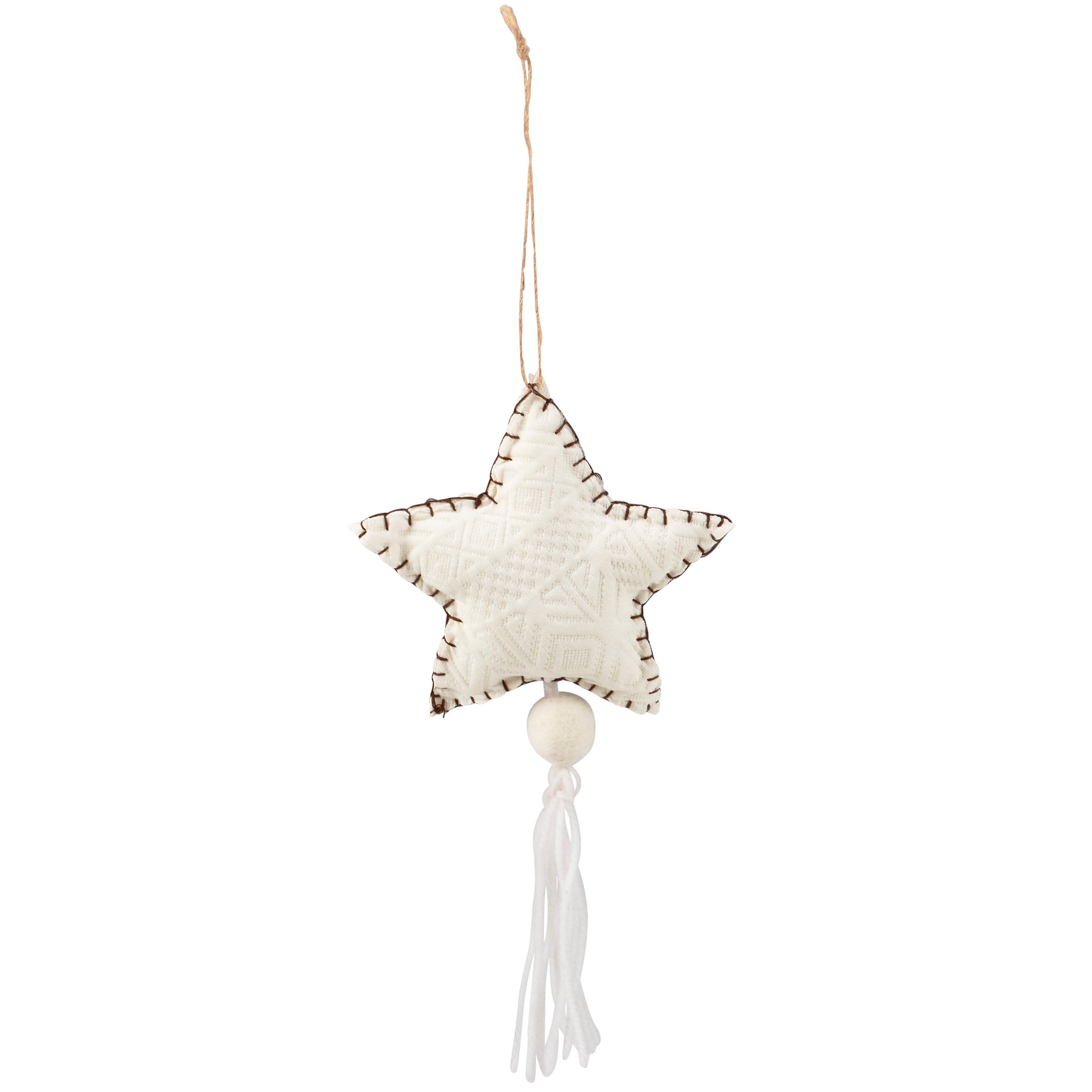 A set of felt ornaments from our Christmas Collection including a heart and a star ornament with a cozy textured pattern and stitched border. Seasonal ornaments feature a pom and tassel on the bottom for added interest. Our Heart & Star ornament set is easy to hang for display via attached string hangers. A rustic set of winter-themed ornaments perfect for seasonal display.