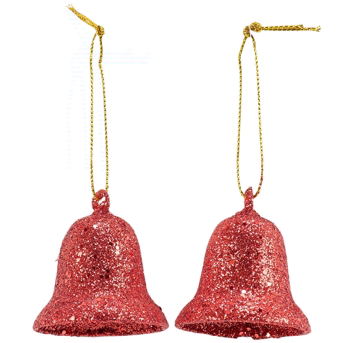 A set of 2 decorative ornaments from our Christmas Collection displaying sculpted holiday bell designs with red glitter finish for added interest. Our Red Bells ornament set is easy to hang for display via attached string hangers. Seasonal ornament set comes packaged in a polybag with header card and hole for easy store rack display. A set of retro Christmas home accents perfect for a Christmas tree or for seasonal decorating.