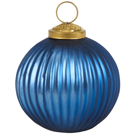 A small glass ornament from our Christmas Collection displaying a vintage blub design with deep blue color and a textured ribbed pattern. Our small Blue Kugel glass ornament is ready to hang for display via the included top gold loop. A vintage home accent perfect for a Christmas tree or for gifting.