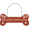 A wooden ornament from our Pet Collection featuring a dog bone cutout shape and holiday pet inspired design in a rustic style. Design displays paw prints and snowflakes with a fun pet inspired seasonal sentiment that reads "The Dog's Been Good." Seasonal pet ornament also features distressed details with coordinating black color on the sides and back. Our Dog's Been Good ornament is easy to hang for display via attached twisted wire hanger. A fun pet-themed ornament perfect for seasonal display.