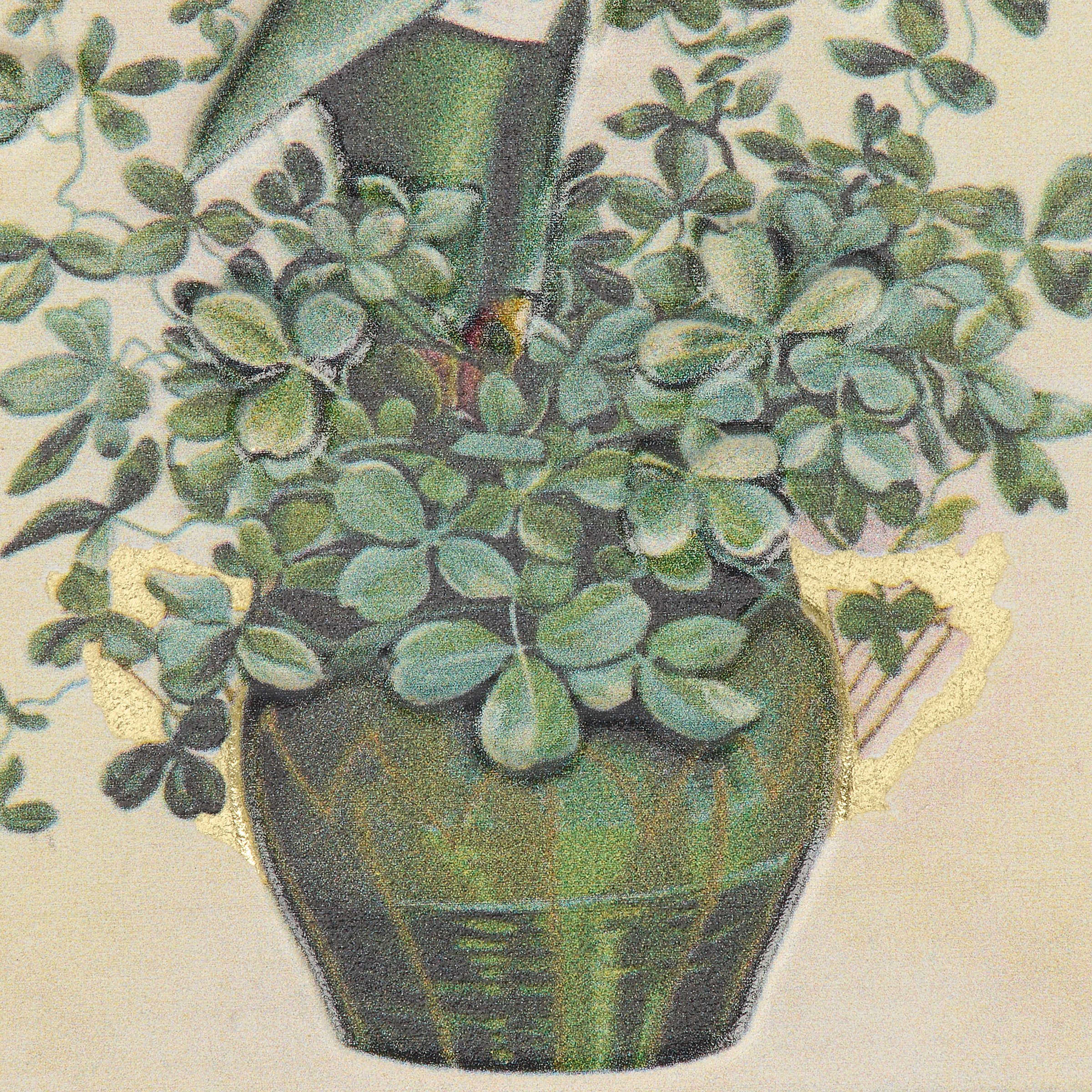 A metal ornament from our St. Patrick's Day Collection displaying vintage art of a fancy Irishman holding a shamrock while standing in a pot of clovers with a sassy seasonal sentiment that reads "Zero Lucks Given." St. Patrick's Day ornament features metallic gold foil accents and embossed details for added dimension. Our Zero Lucks Given ornament is ready to hang for display via attached twisted wire hanger. A fun St. Patrick's Day home accent that easily adds seasonal style to any home or work space.