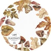 Great for customizing place settings and making clean-up a breeze, these round paper placemats from our Fall & Harvest Collection display hand painted designs of fall leaves and mushrooms along the border. Pack includes 24 single-use placemats. Our Fall Leaves placemats are shrink-wrapped for protection and storage as well as easy shelf display. A rustic tabletop accessory perfect for customizing seasonal place settings.