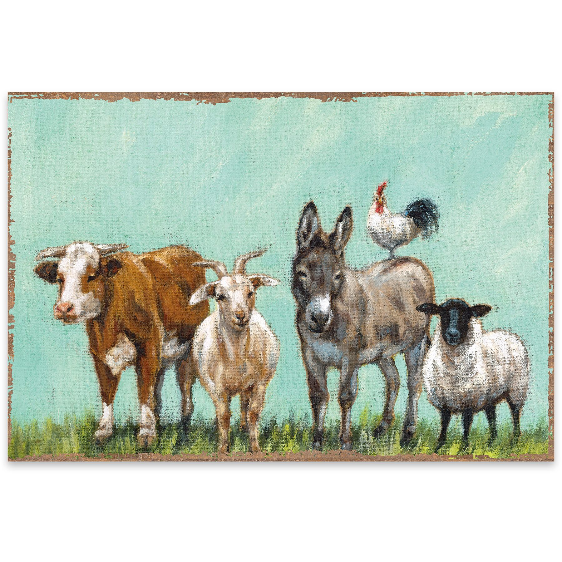 Great for customizing place settings and making clean-up a breeze, these paper placemats from our Farmhouse Collection feature a farm animal design. Design is replicated from original artwork painted onto burlap canvas, giving the art a unique depth and texture. Placemat pad includes 24 single-use, tearaway placemats. Our animal family placemat pad is shrink-wrapped for protection and storage.