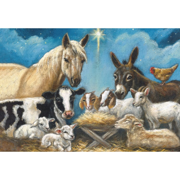 Great for customizing place settings and making clean-up a breeze, these paper placemats feature a farm animal Nativity design. Design is replicated from original artwork painted onto burlap canvas, giving the art a unique depth and texture. Placemat pad includes 24 single-use, tearaway placemats. Our Nativity placemat pad is shrink-wrapped for protection and storage.