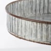 A decorative tray from our Home Accents Collection displaying a wooden pedestal design with galvanized metal tray on top. Design features distressed details and ribbed texture along the sides of the tray. Our Primitive pedestal tray is designed to free-stand on any flat surface and for decorative use only; not food safe. Assembly required. A neutral everyday home accent that coordinates with a variety of styles.