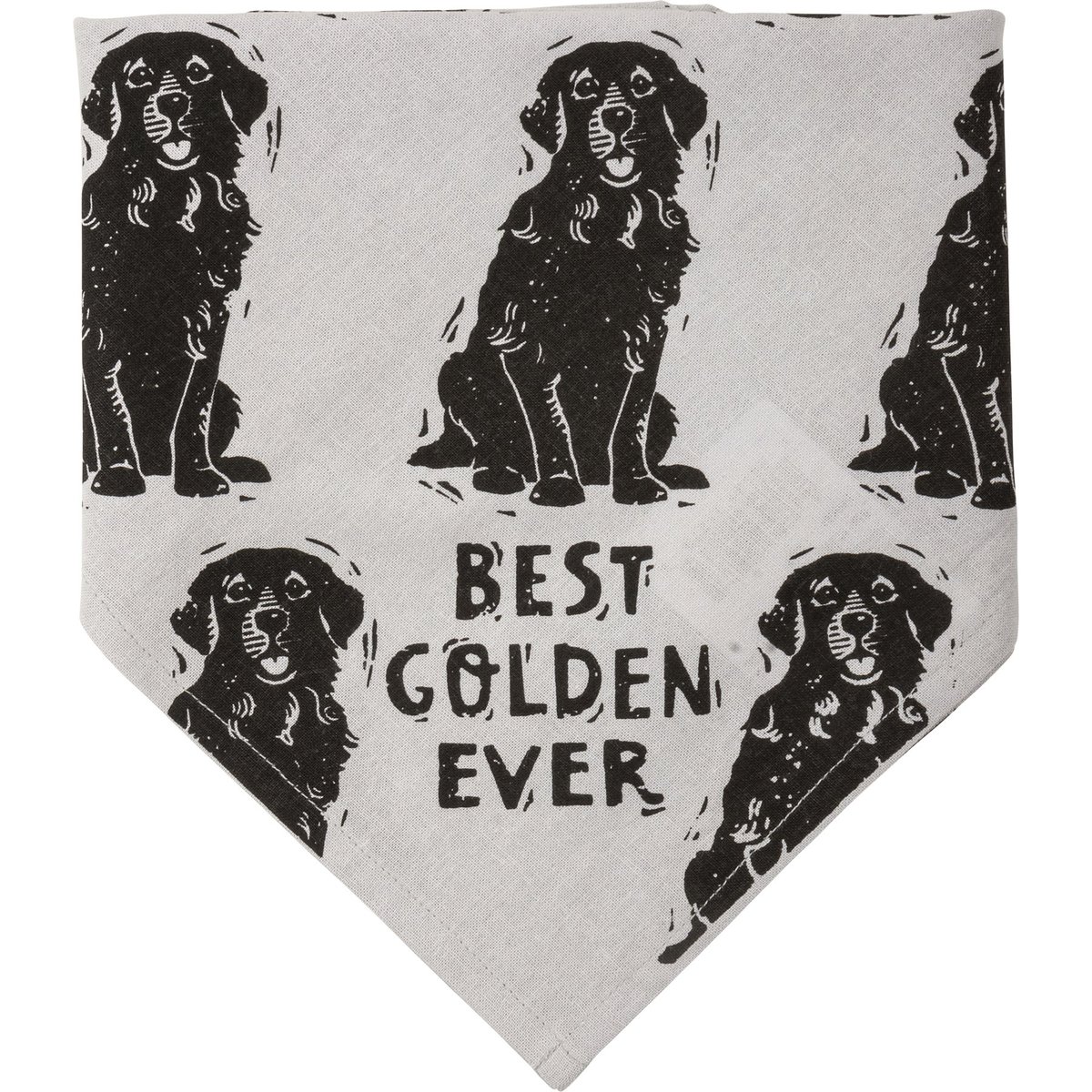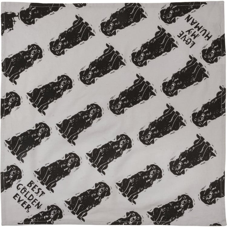 A large reversible pet bandana from our Pet Collection featuring "Best Golden Ever" and "Love My Human" sentiments on opposite corners with an all-over block print golden retriever design. Bandana is made of cotton and is machine-washable. Best Golden Ever pet bandana coordinates with our Love My Golden Baseball Cap for matching dog and owner outfits.