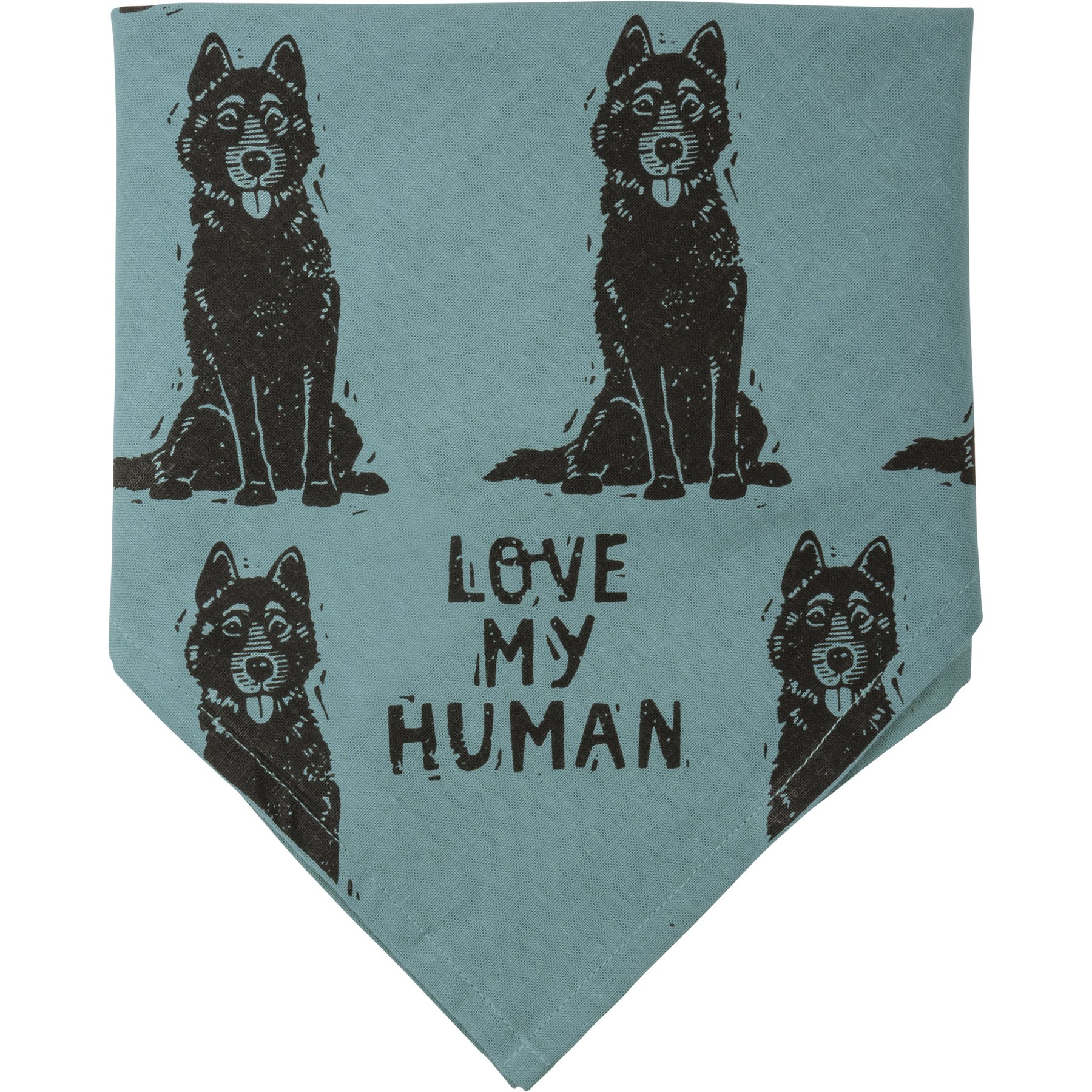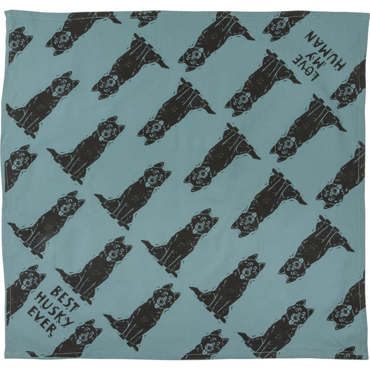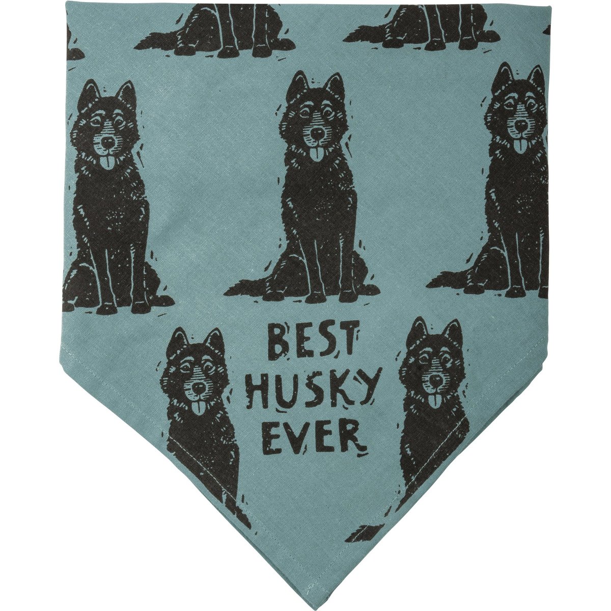 A large reversible pet bandana from our Pet Collection featuring "Best Husky Ever" and "Love My Human" sentiments on opposite corners with an all-over block print husky design. Bandana is made of cotton and is machine-washable. Best Husky Ever pet bandana coordinates with our Love My Husky Baseball Cap for matching dog and owner outfits.