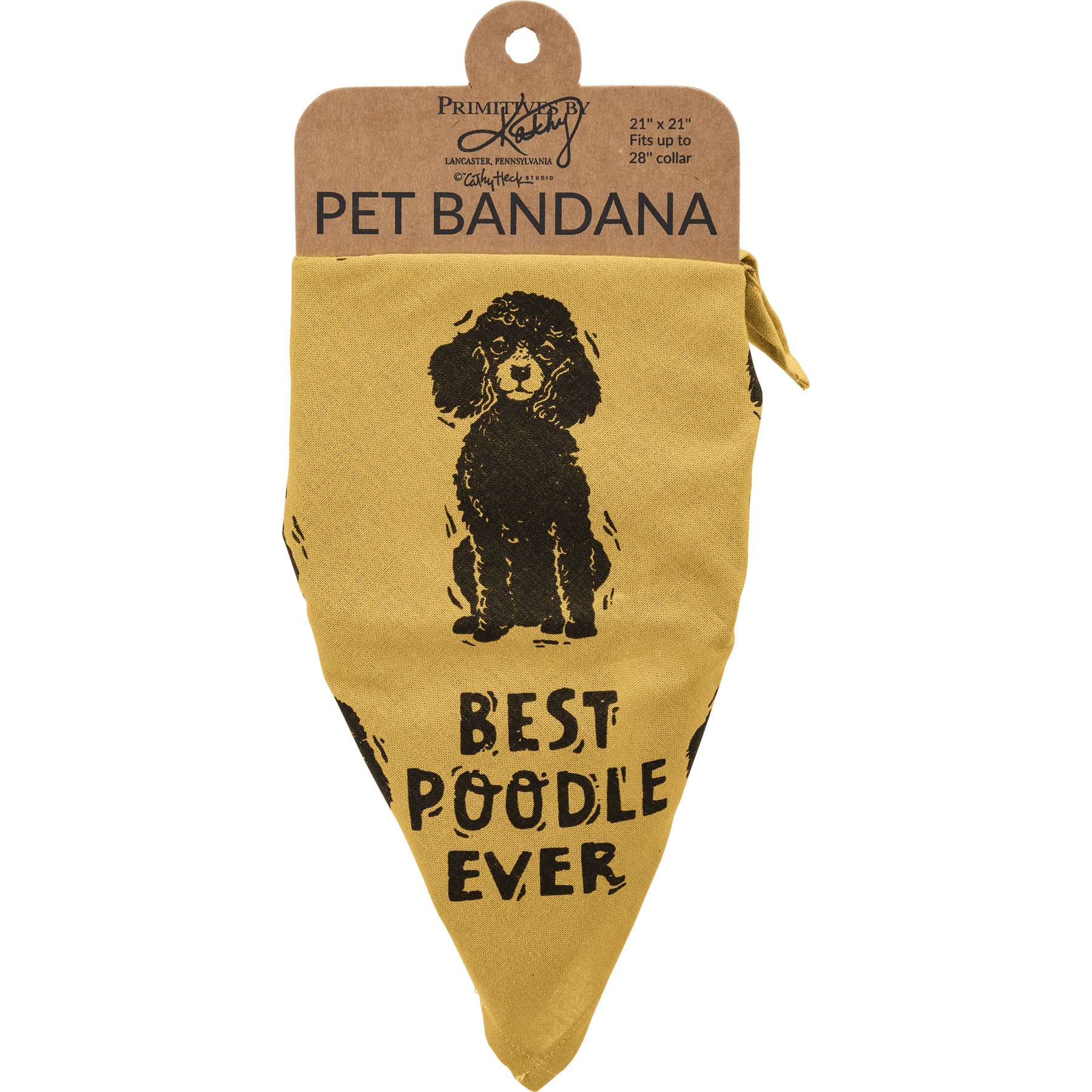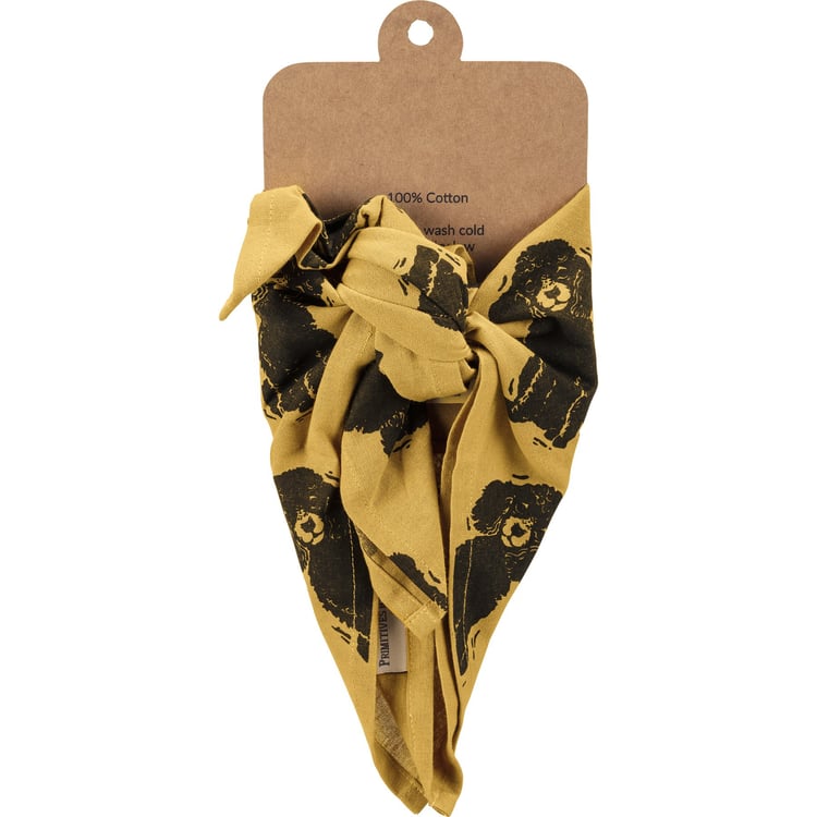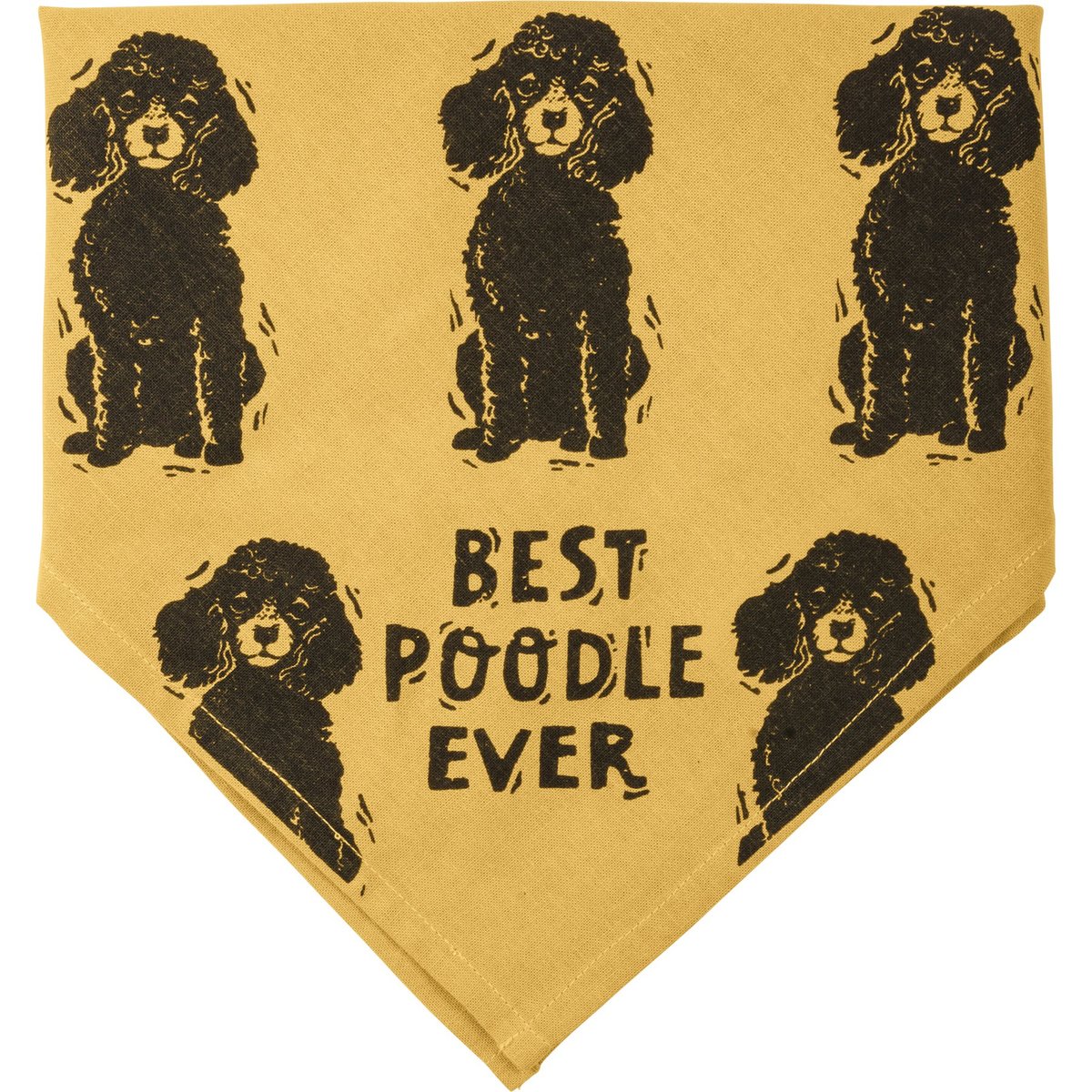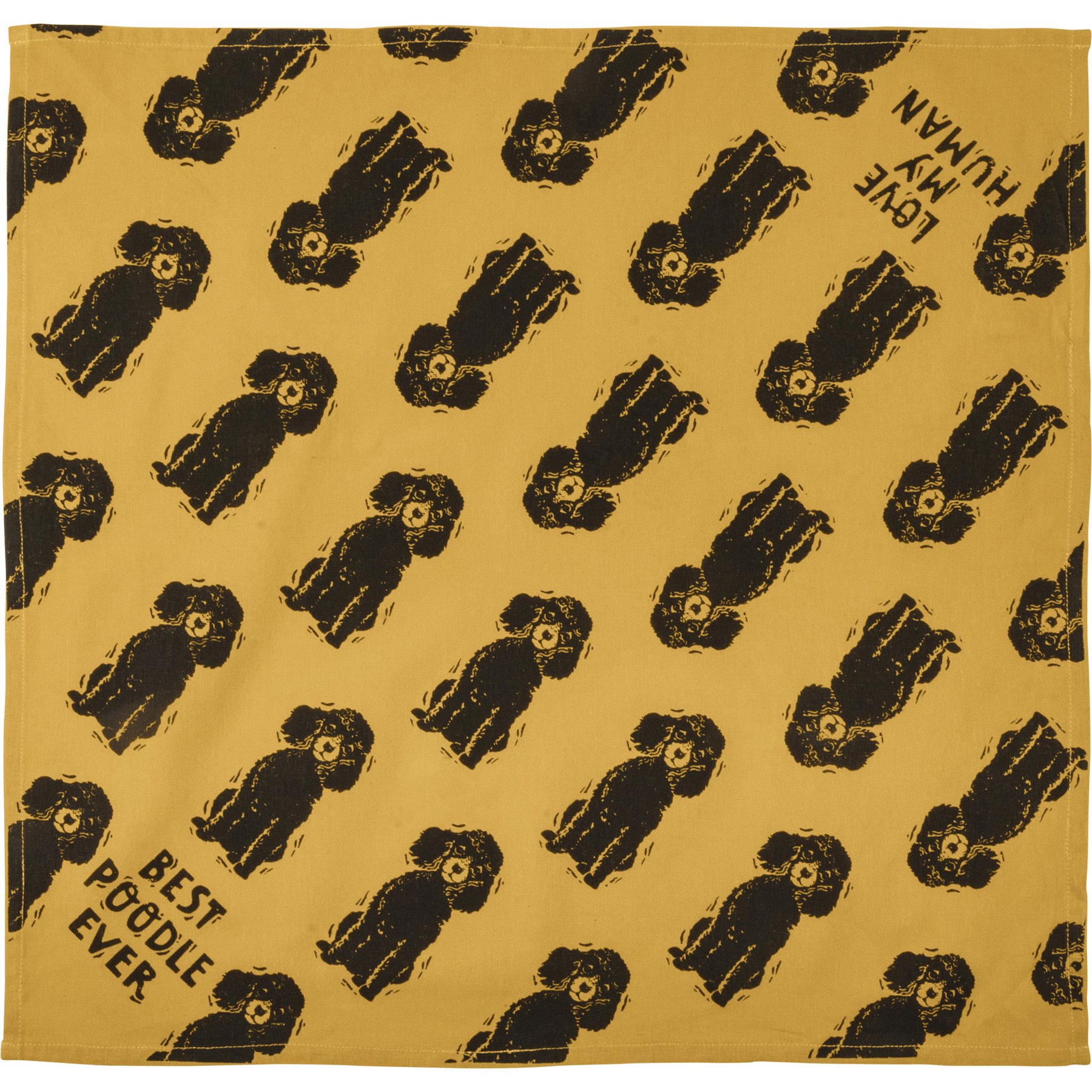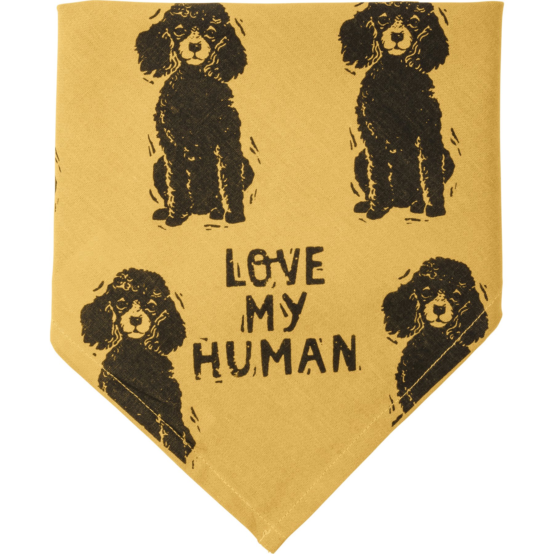 A large reversible pet bandana from our Pet Collection featuring "Best Poodle Ever" and "Love My Human" sentiments on opposite corners with an all-over block print poodle design. Bandana is made of cotton and is machine-washable. Best Poodle Ever pet bandana coordinates with our Love My Poodle Baseball Cap for matching dog and owner outfits.