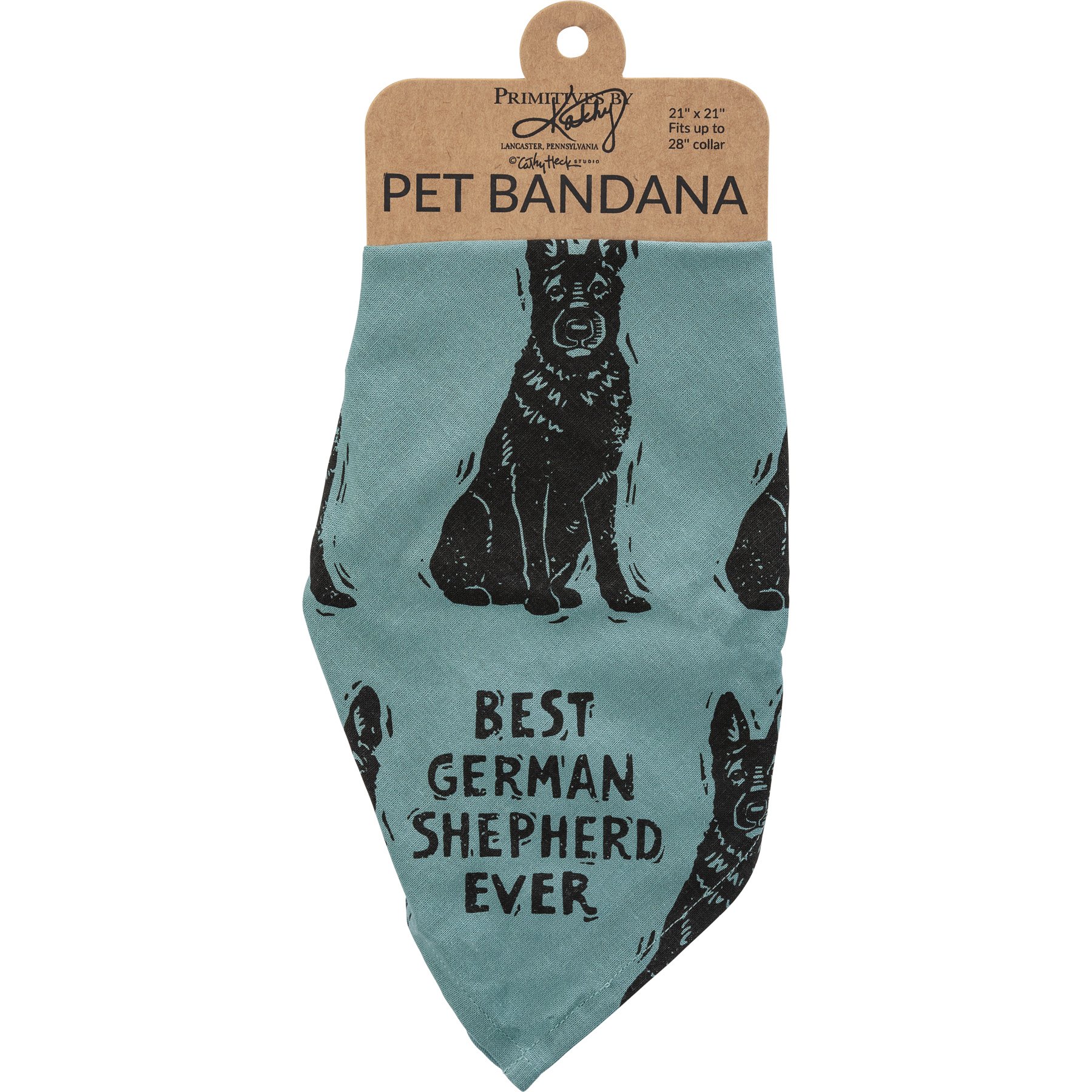 A large reversible pet bandana from our Pet Collection featuring "Best German Shepherd Ever" and "Love My Human" sentiments on opposite corners with an all-over block print german shepherd design. Bandana is made of cotton and is machine-washable. Best German Shepherd Ever pet bandana coordinates with our Love My German Shepherd Baseball Cap for matching dog and owner outfits.