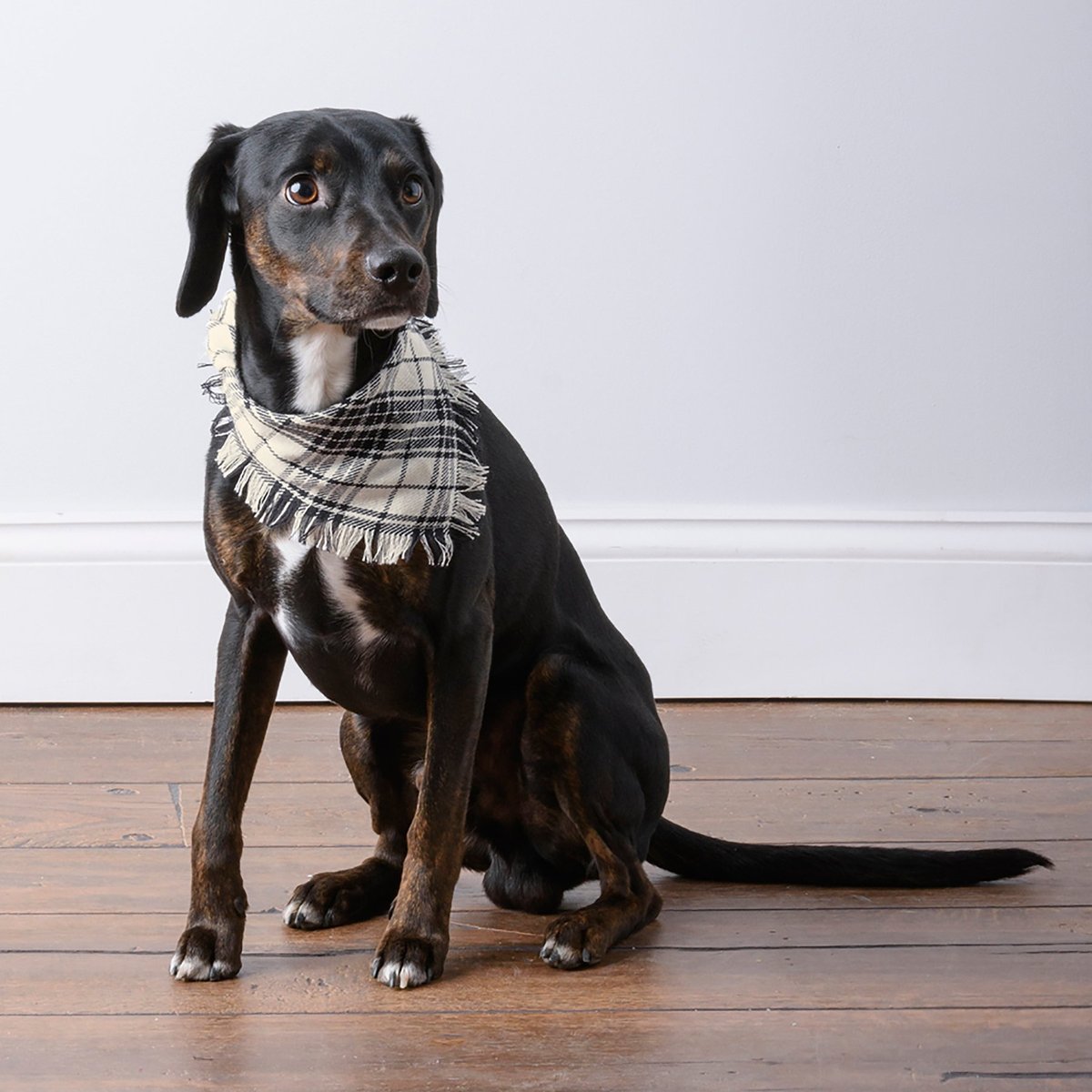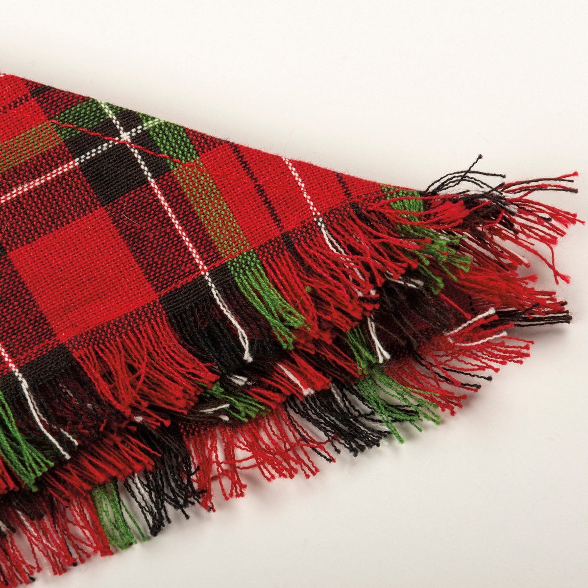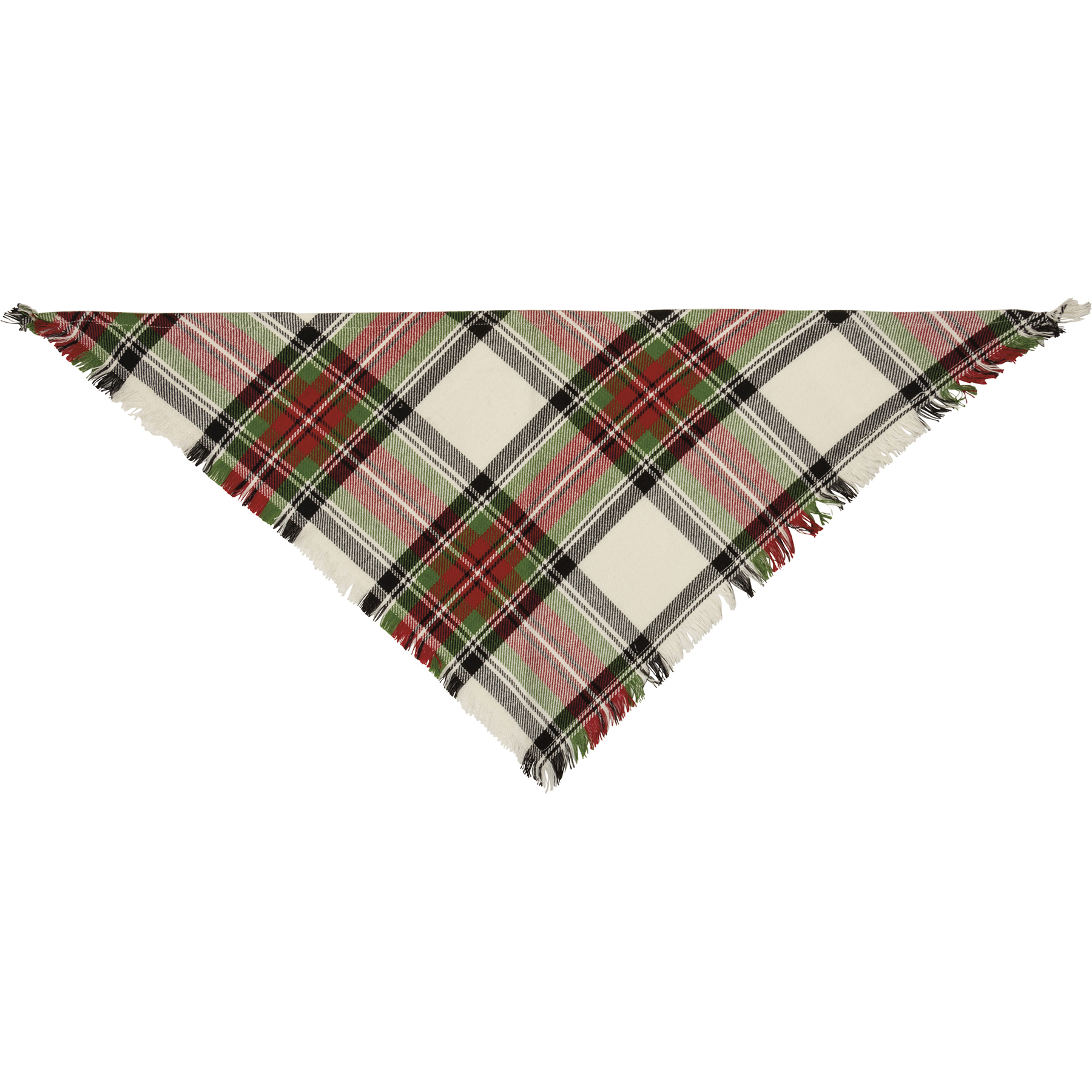 A set of three medium pet bandanas from our Pet Collectionfeaturing holiday plaid designs and fashionable fringed trim. Bandanas are folded on a kraft paper card and packaged in a protective polybag. Card includes a cutout to easily hang on rack and package includes an insert with instructions for use. Bandanas are 28" x 14" and fits necks up to 20". Machine-washable. Plaid Christmas Pet bandanas coordinate well with complementing people scarves and pet bow ties so pet parents and their fur babies can have a sweet matching moment.