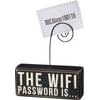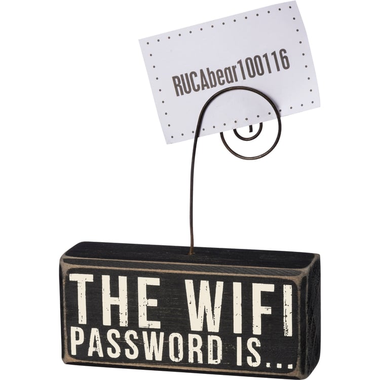 A classic black and white photo block featuring a distressed "The Wifi Password Is..." sentiment with top spiral wire holder to display password to guests. Not eligible for discounting.